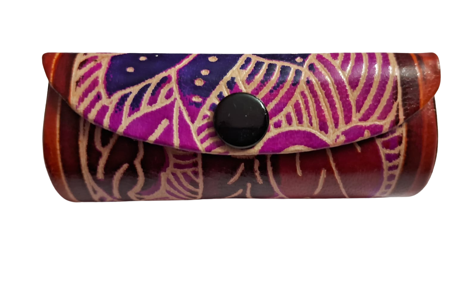 This case is made from handpicked, high-quality leather, known for its durability and soft texture. It’s then brought to life with delicate hand-painted motifs inspired by India’s cultural designs, making each piece beautifully distinct. The compact mirror inside adds a practical touch for on-the-go elegance, making it a fusion of convenience and charm.