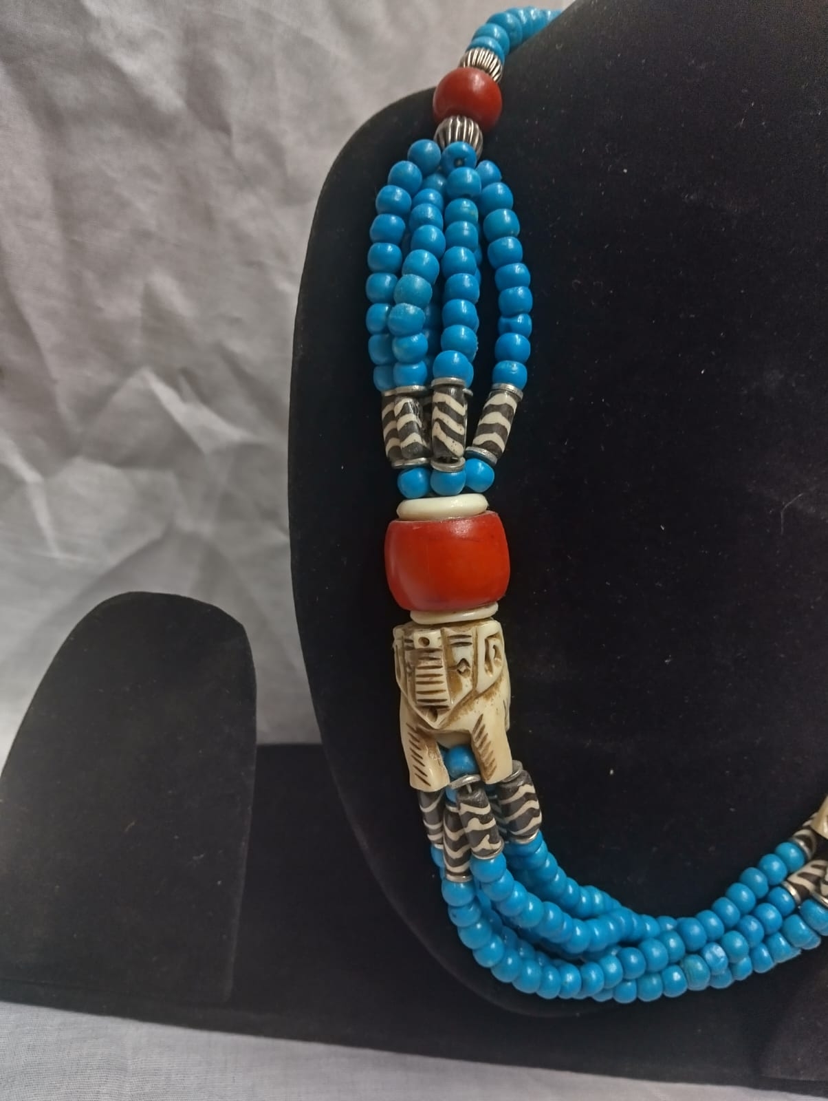 For catering the varegated needs of our clients, we are deeply engrosseed in offering a qualitative array of handicrafted unique jewelly orr Necklace made with bone blue in colour.