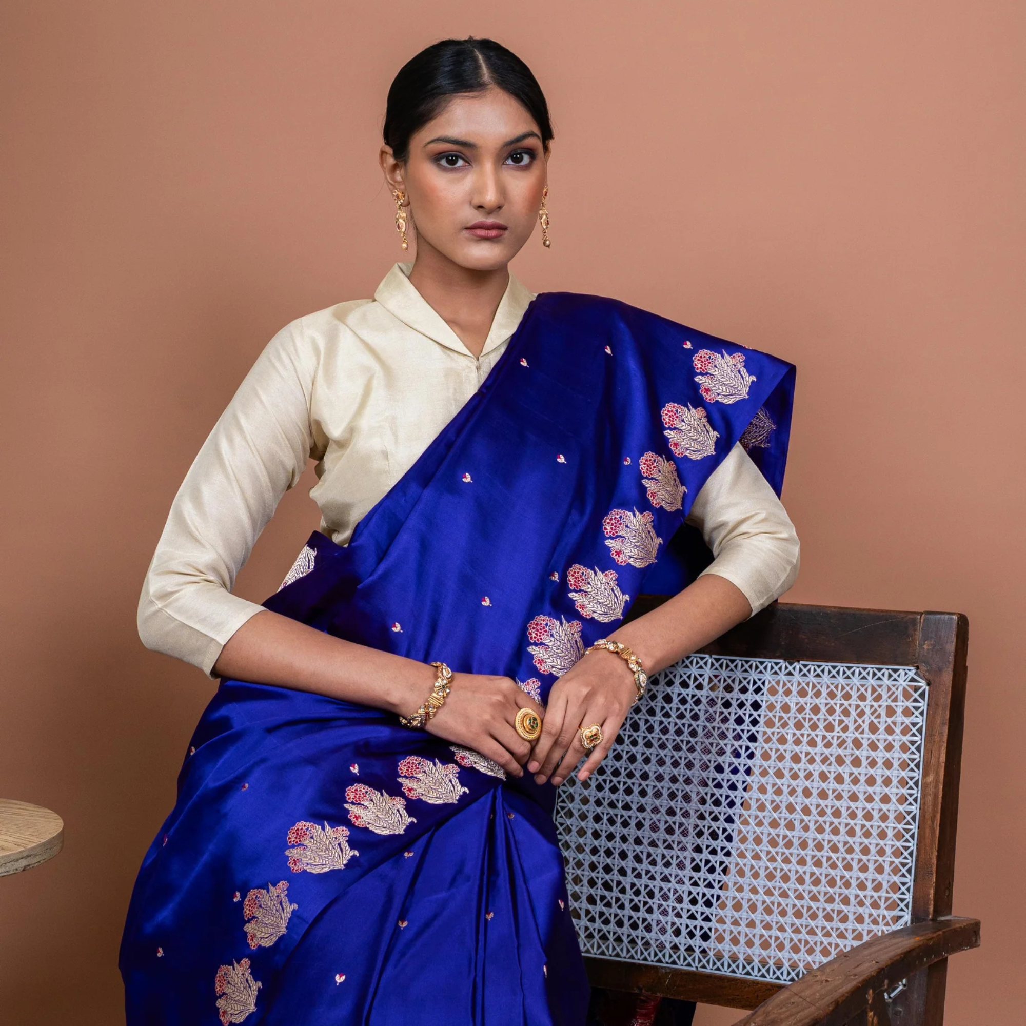 Handwoven Banarasi saree with intricate peacock-inspired motifs