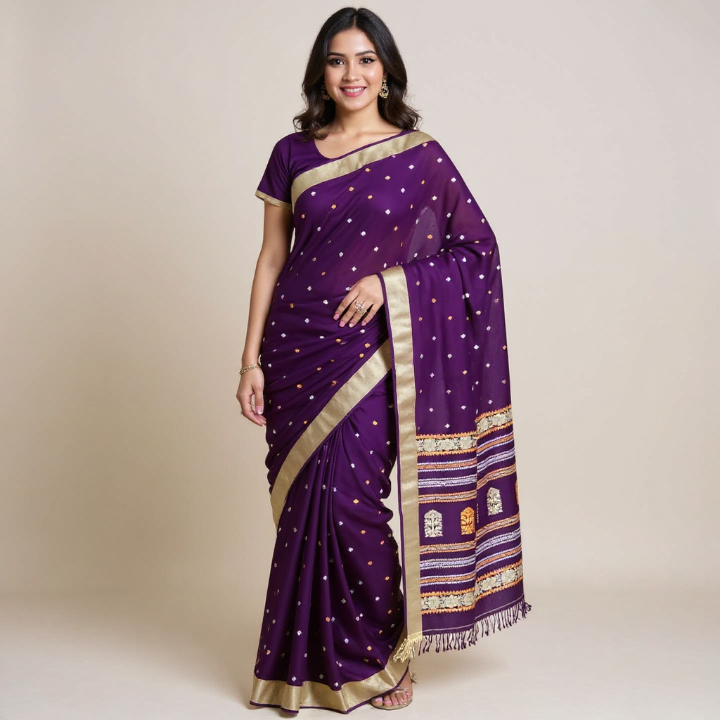 Bengal Handloom Cotton Saree with Blouse Piece | Purple