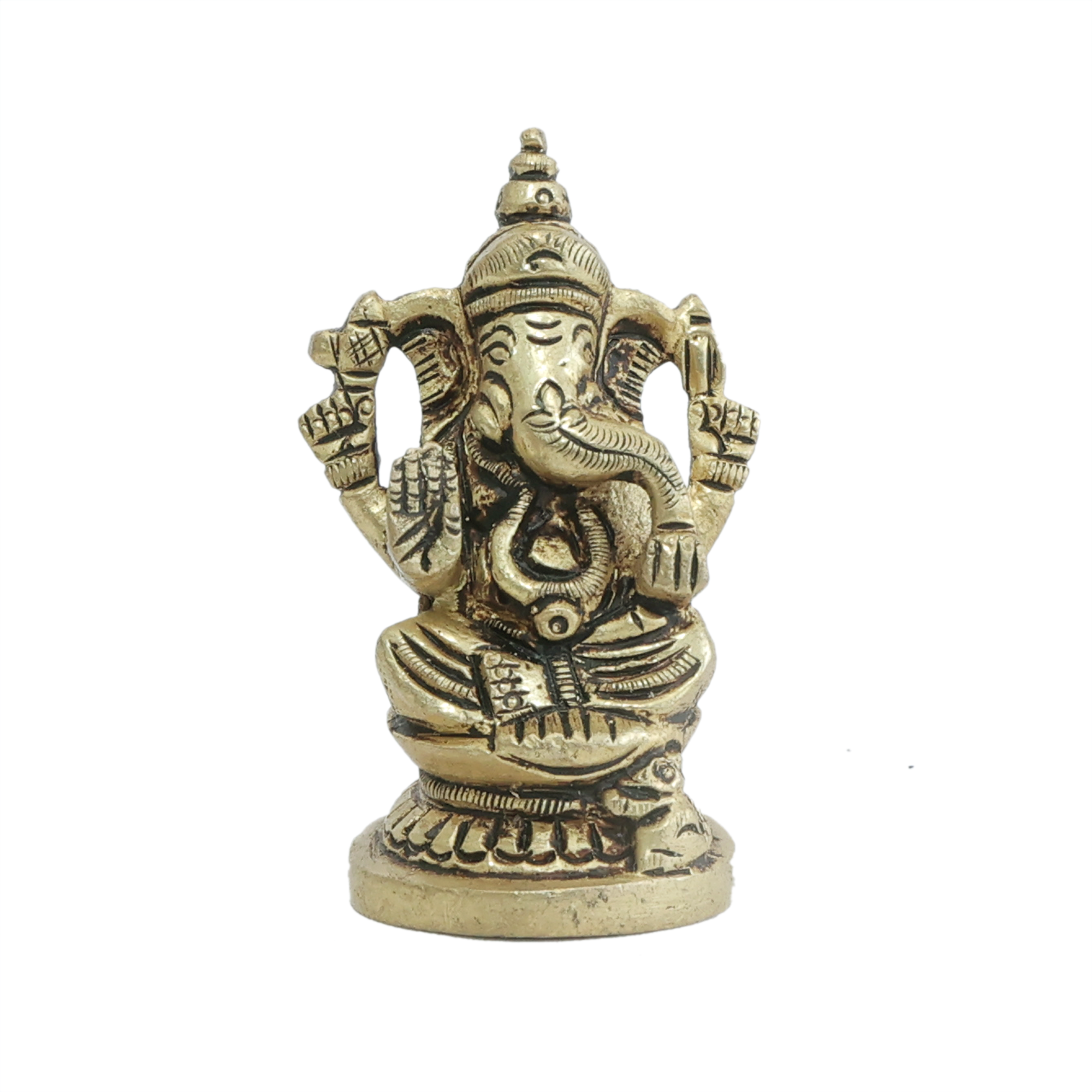 Brass Lord Ganesha Statue - Compact Ganpati Murti for Home Temple