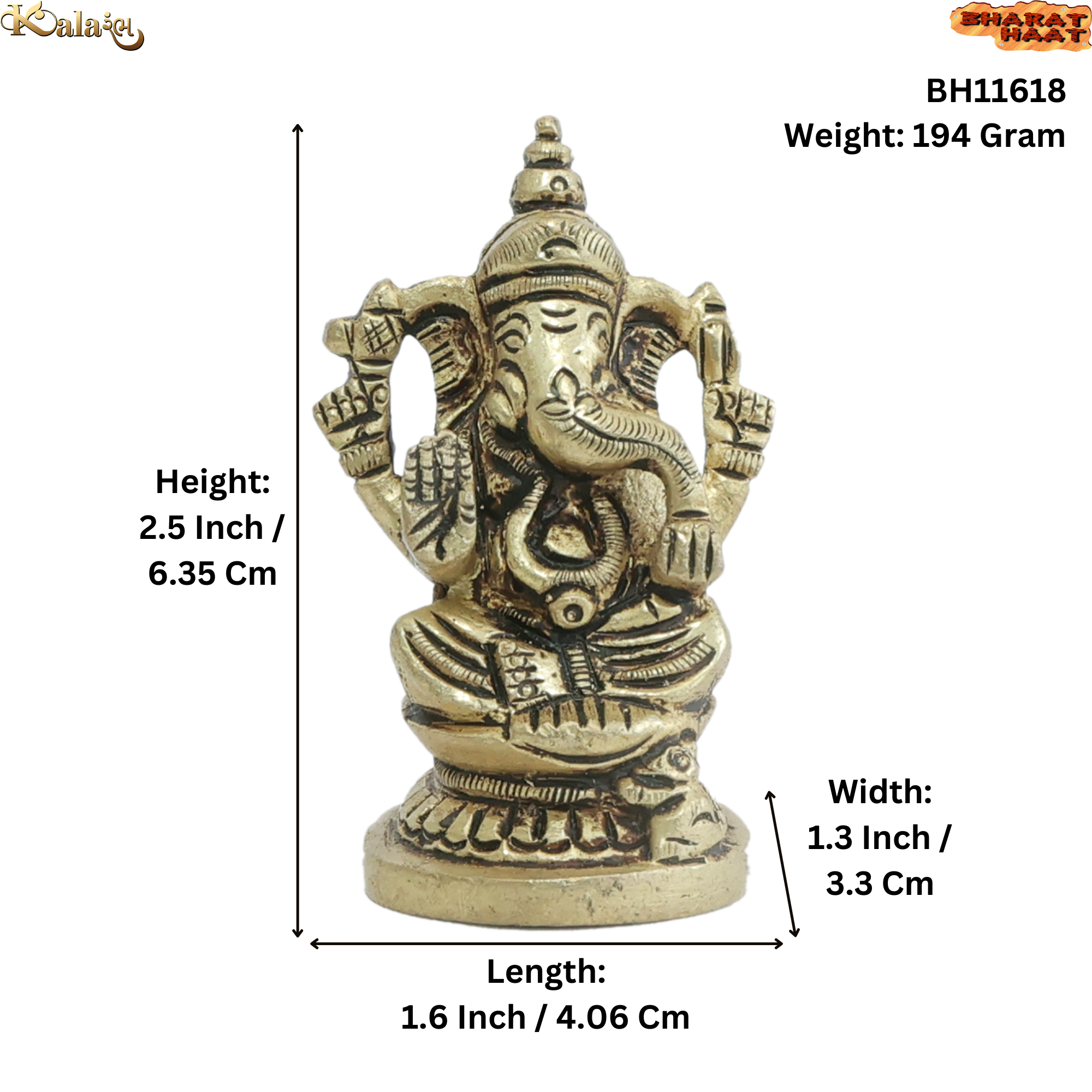 This adorable Ganpati idol measures 1.6" x 1.3" x 2.5" and weighs 194g, making it ideal for small home temples, car dashboard, office desk, or study table. Despite its compact size, every divine feature of Lord Ganesha is beautifully crafted with traditional excellence.