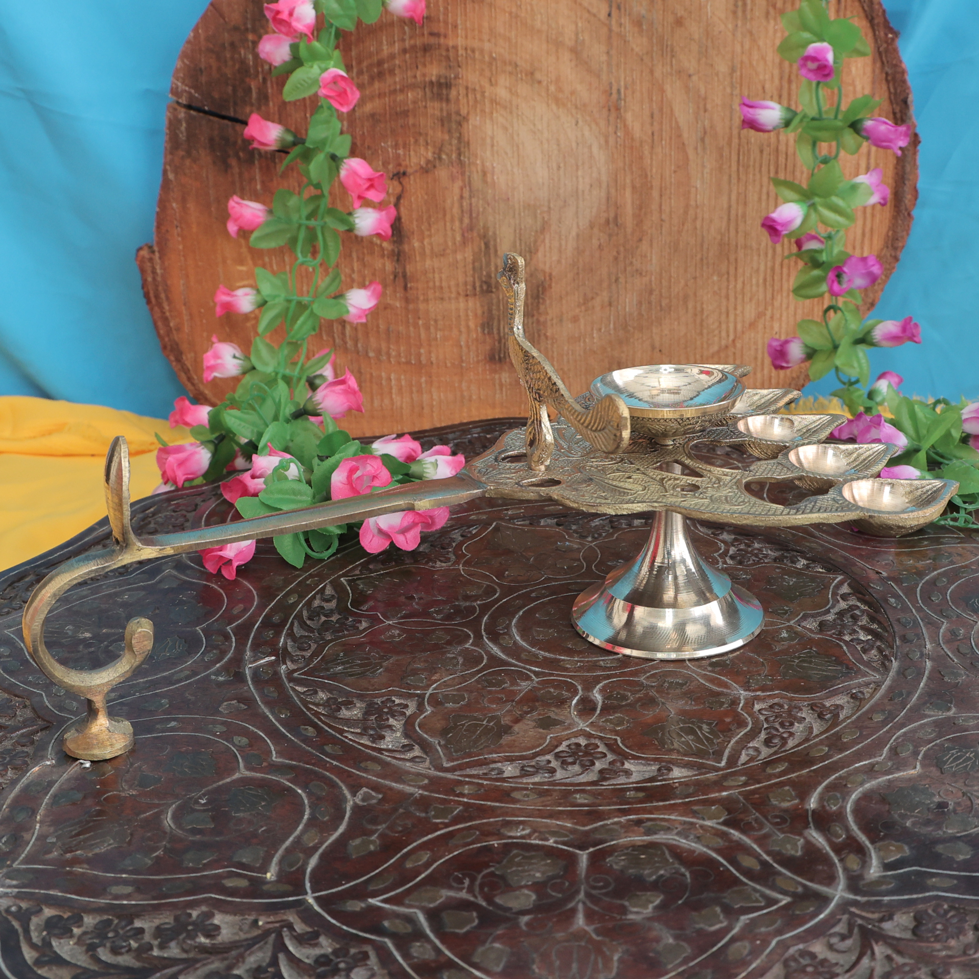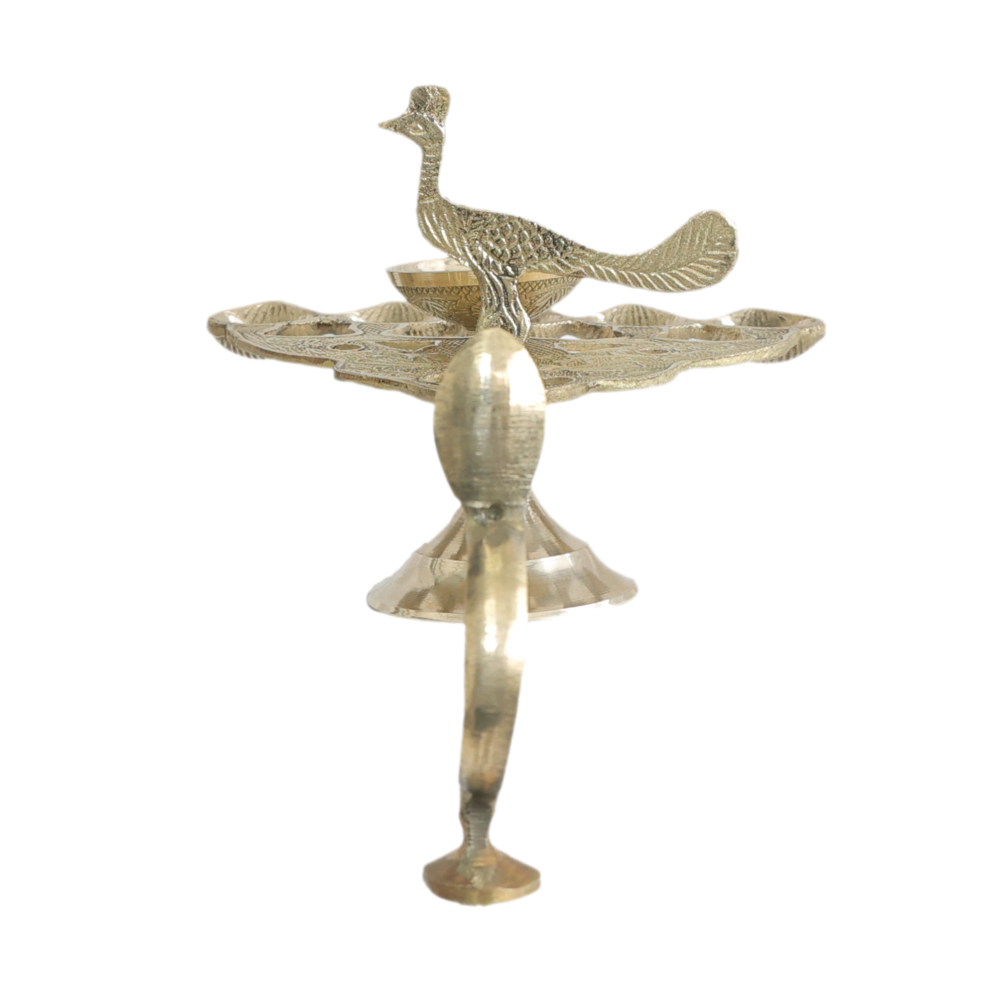 Pure Brass Traditional Aarti Diya - Premium Pooja Lamp for Home Temple