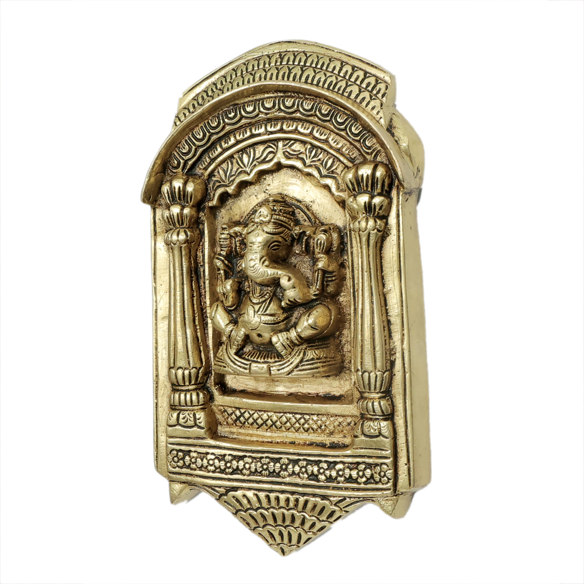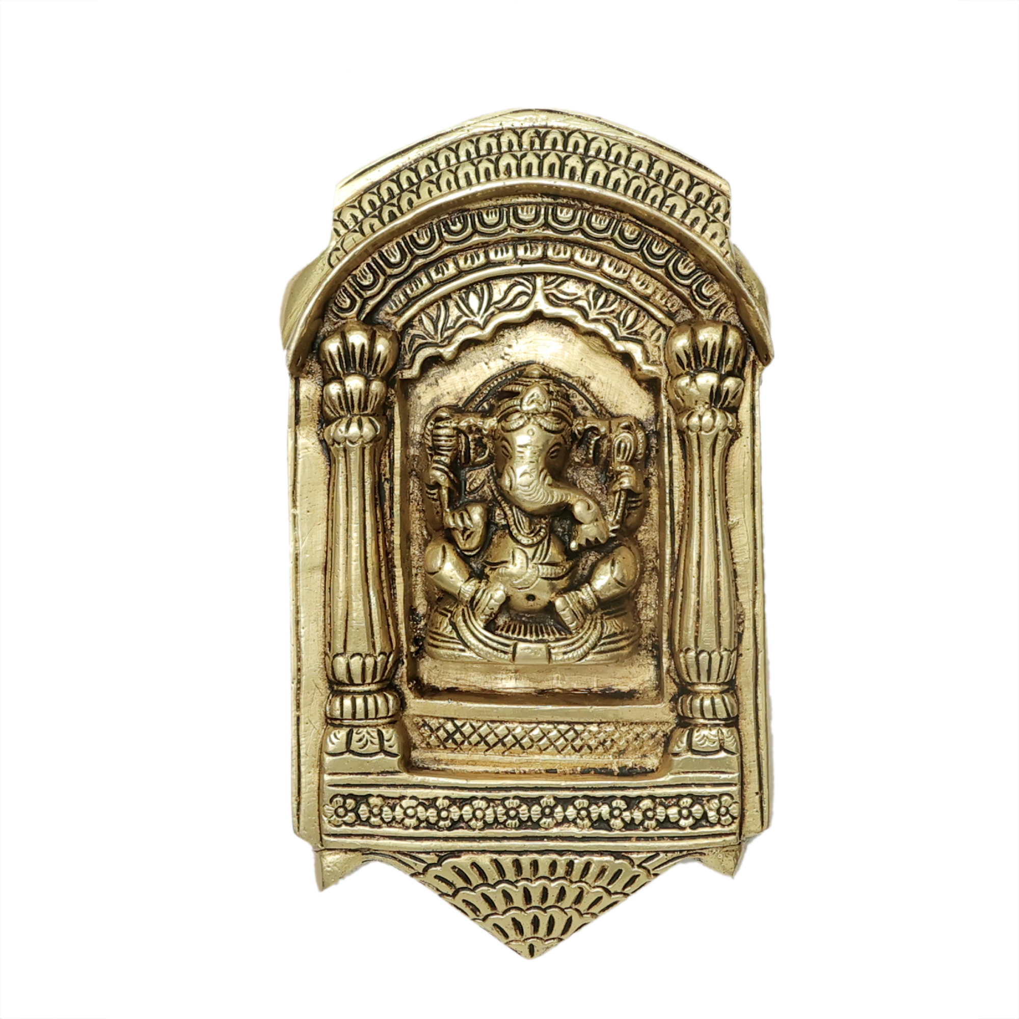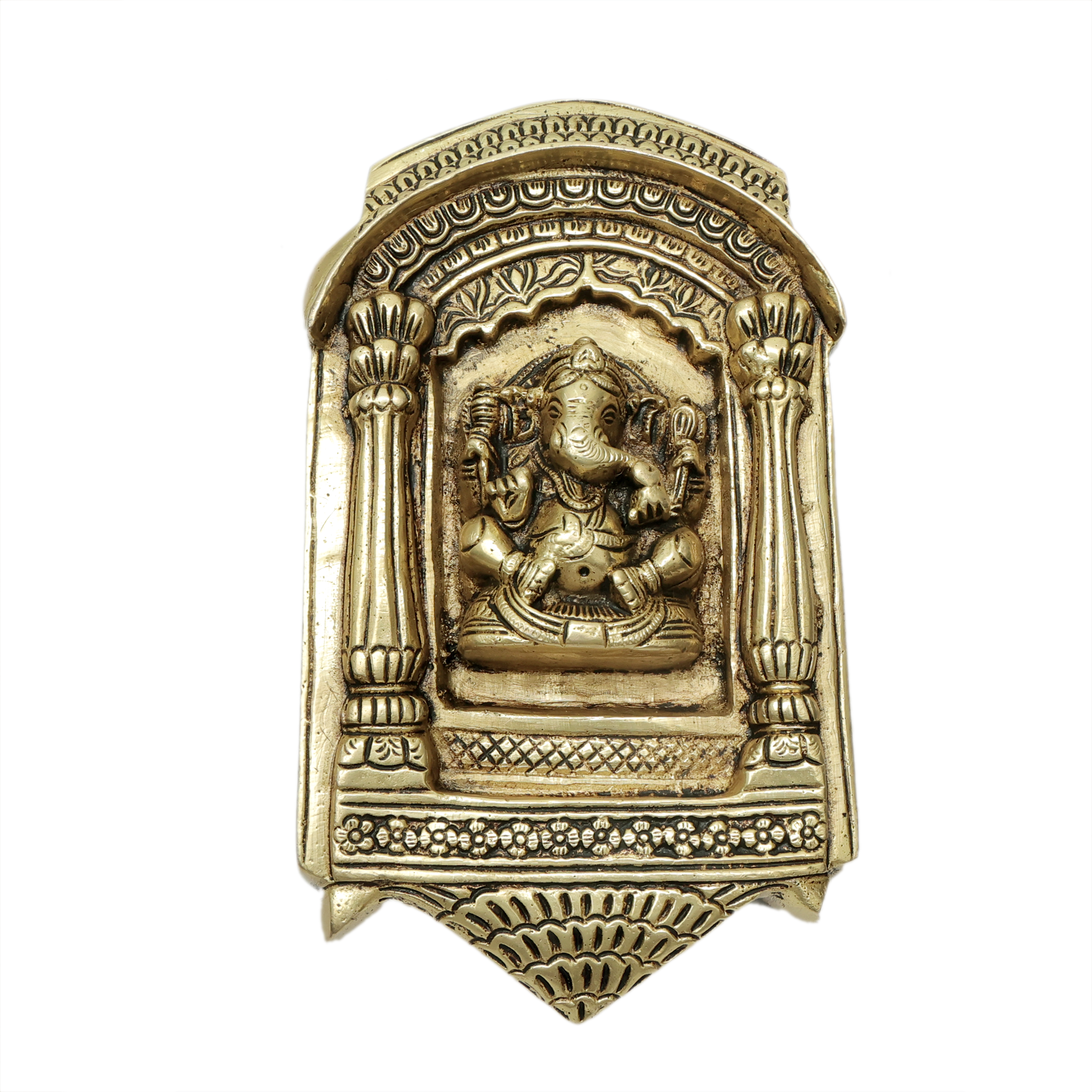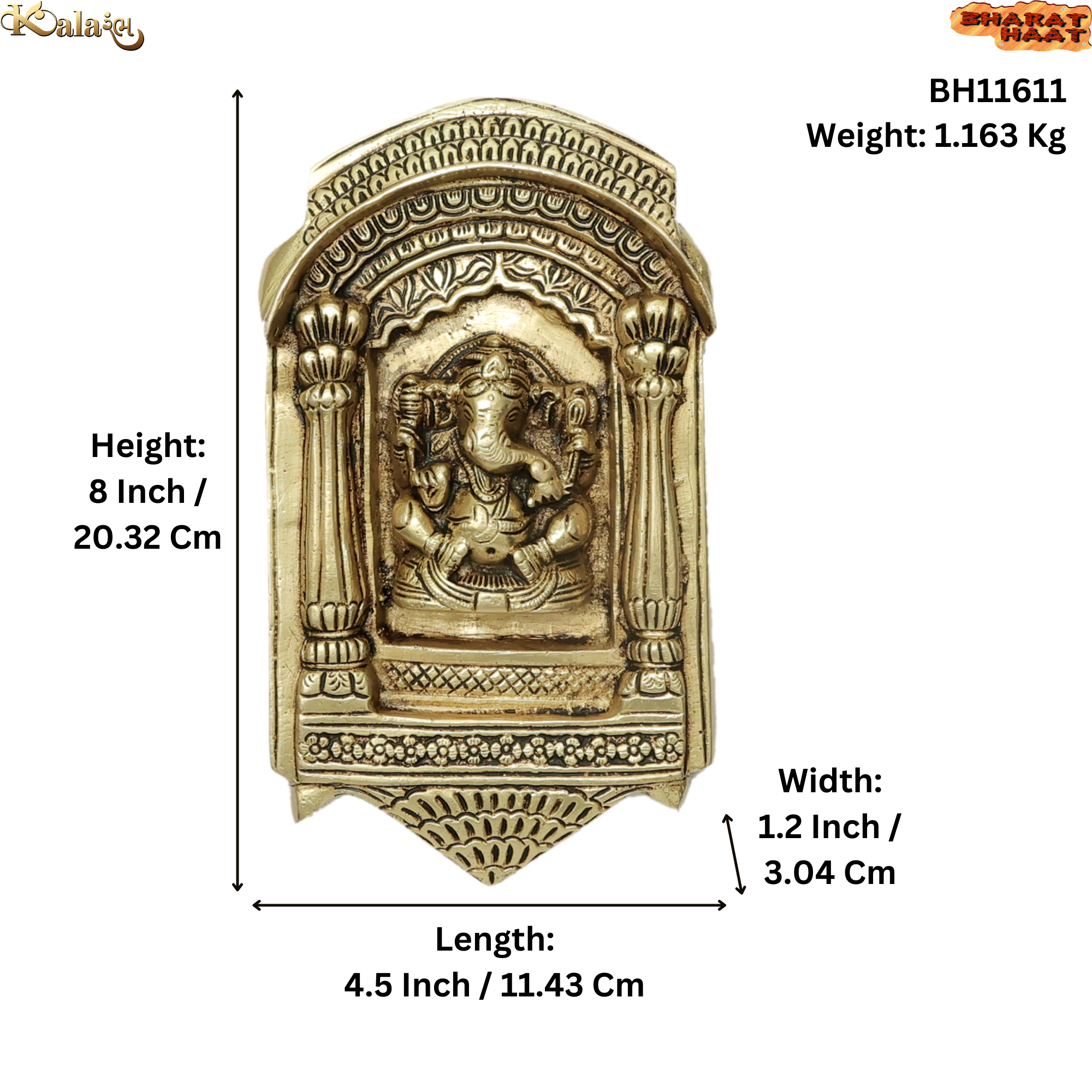 Premium Brass Ganesha Wall Hanging 8 Inch - Sacred Lord Ganesh Sculpture for Temple Decor