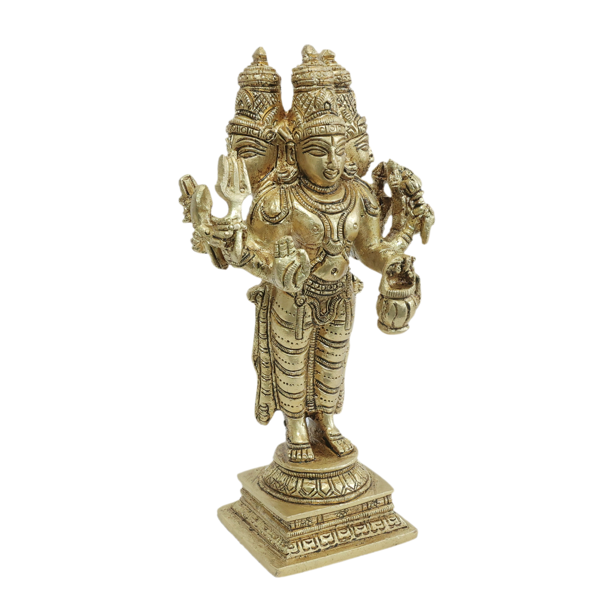 Premium Brass Brahma Vishnu Mahesh Idol - Sacred Trinity Statue for Home Temple