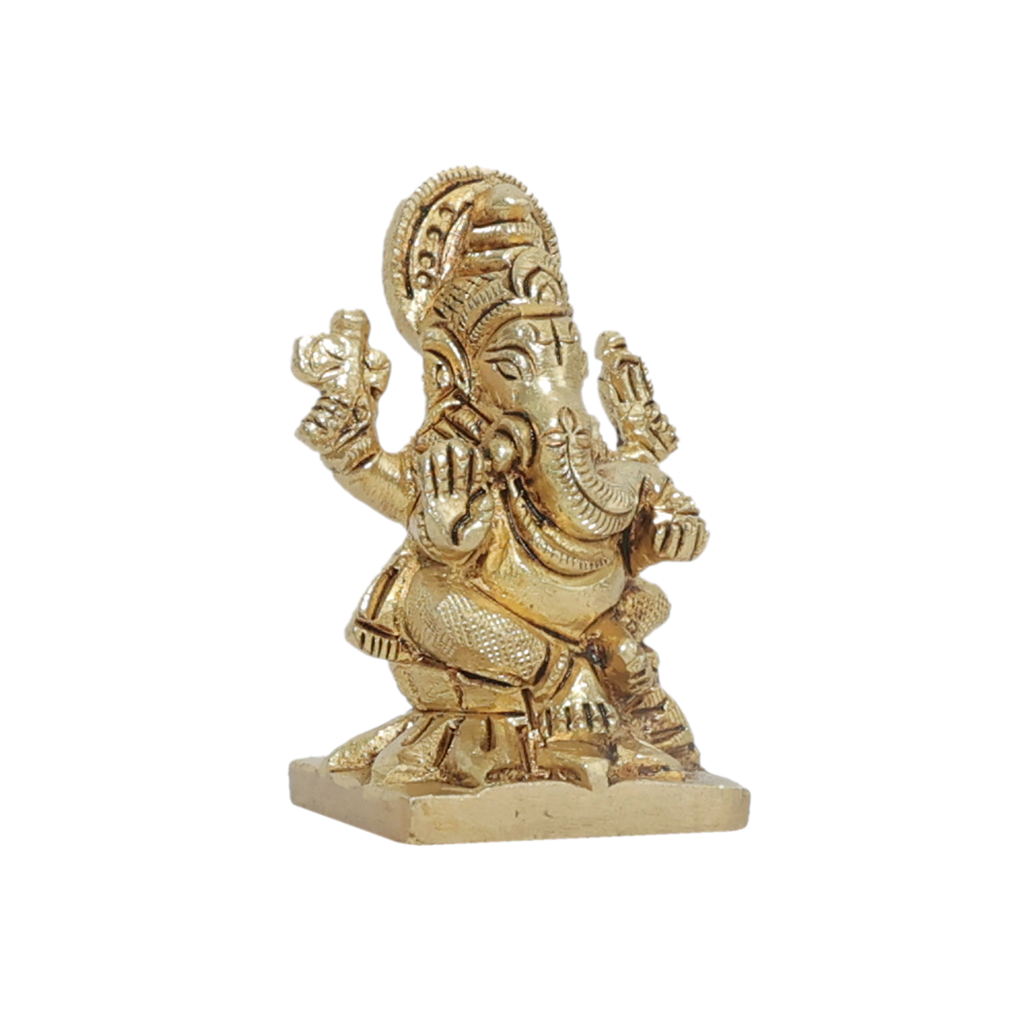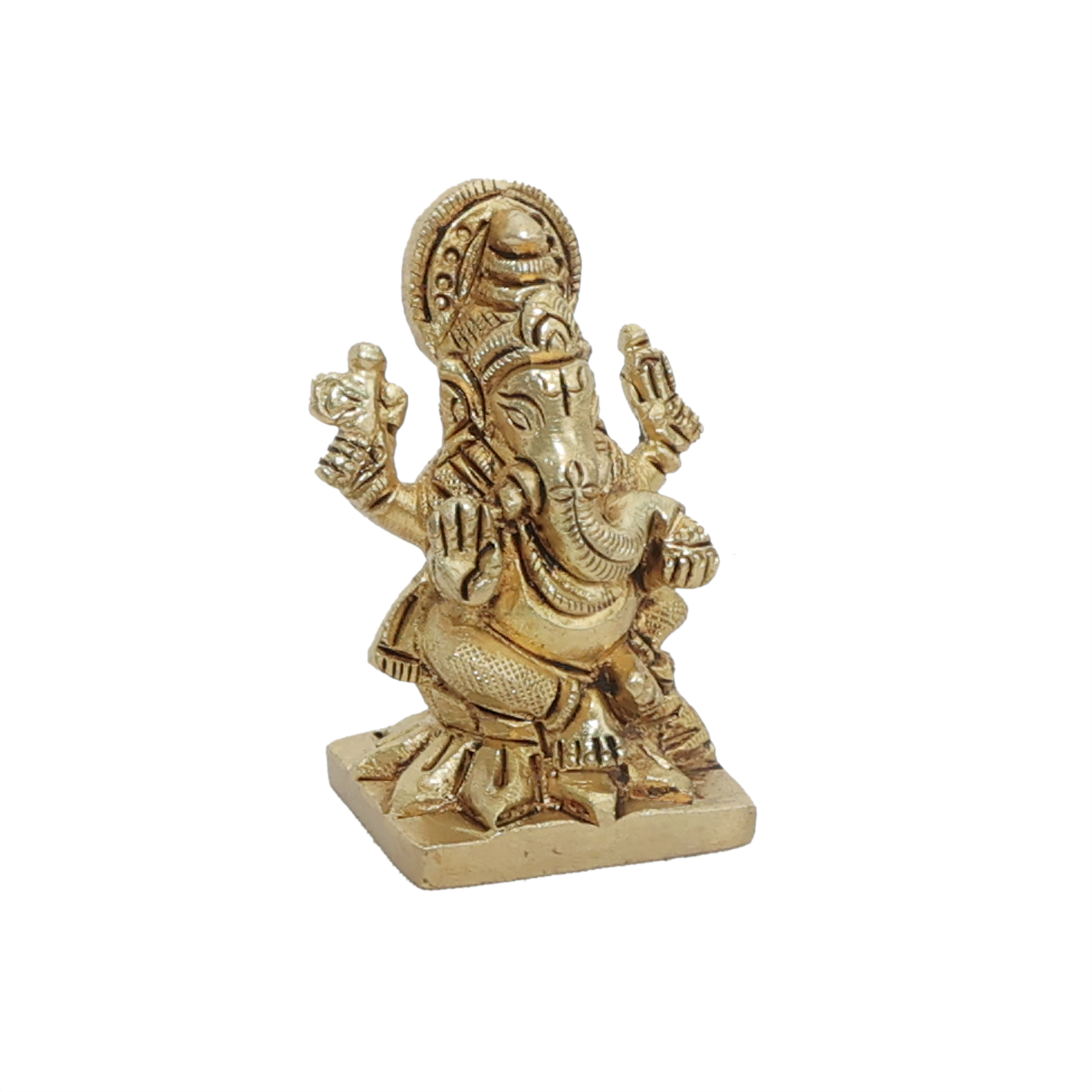 Brass Ganesha Statue - Compact Lord Ganesh Idol for Personal Temple