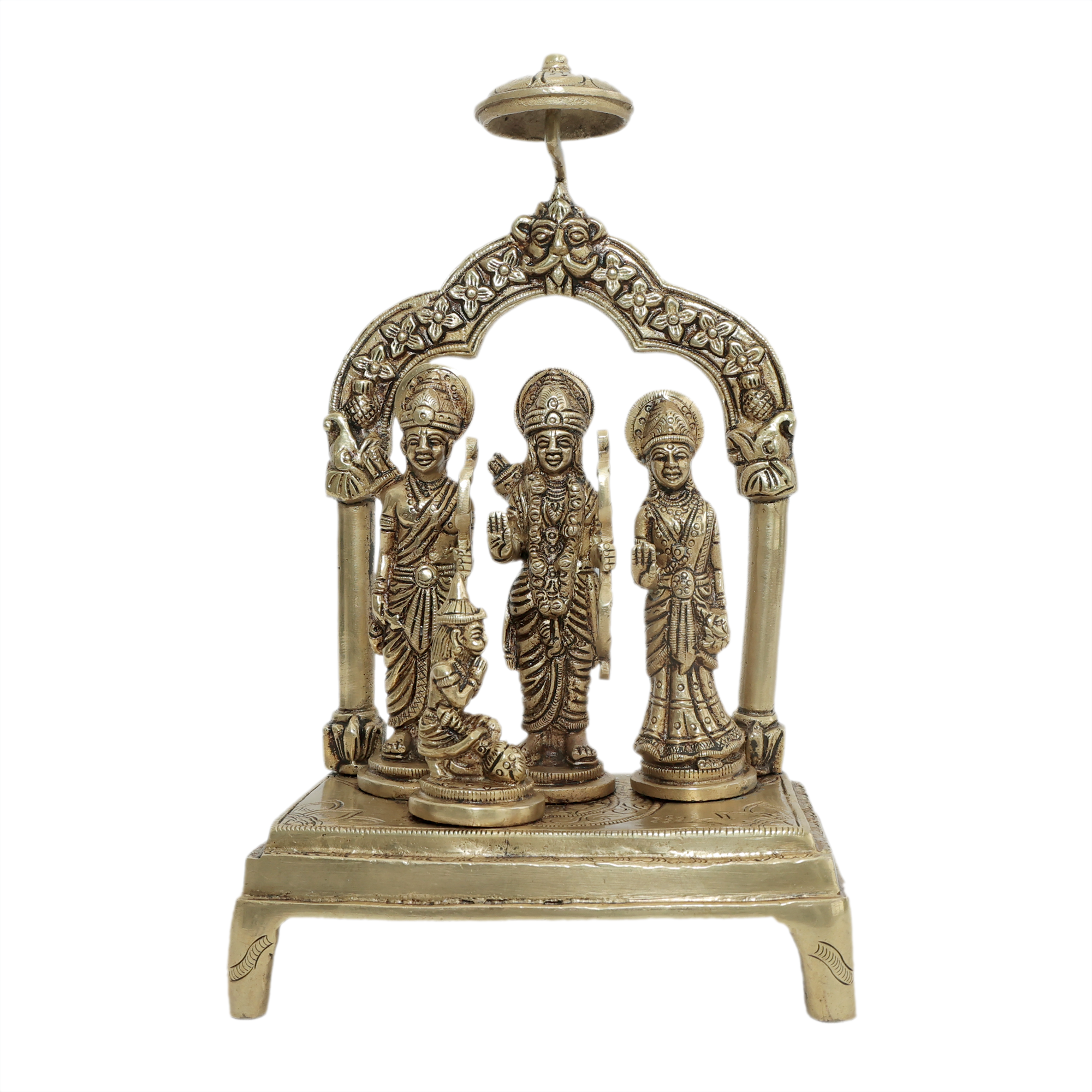 Welcome divine righteousness to your home with this magnificent Ram Darbar brass murti featuring Lord Rama, Sita Mata, and Lakshman ji in golden splendor. This beautiful statue showcases the complete Ram Parivar with intricate detailing, perfect for bringing dharma, peace, and family harmony to your sacred space.