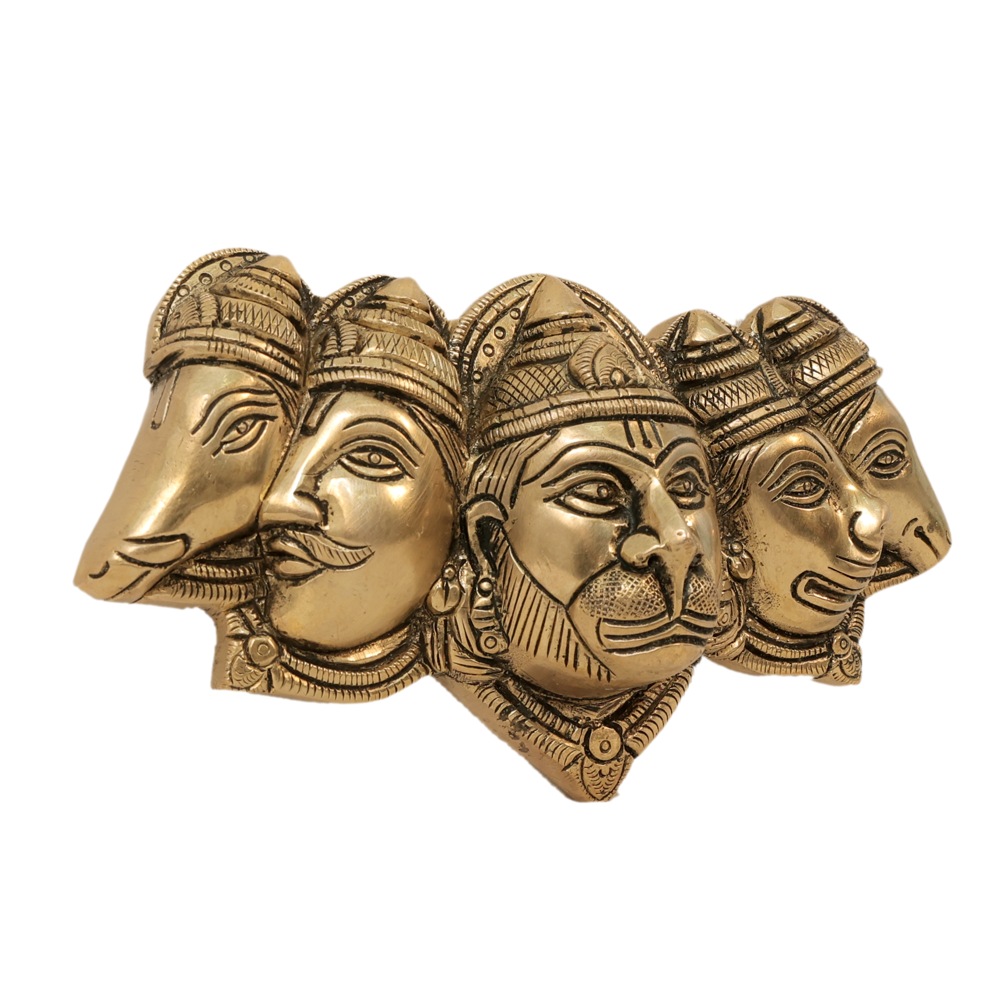 Premium Brass Craftsmanship: Handcrafted Panchmukhi Hanuman wall hanging with intricate details for divine appeal.