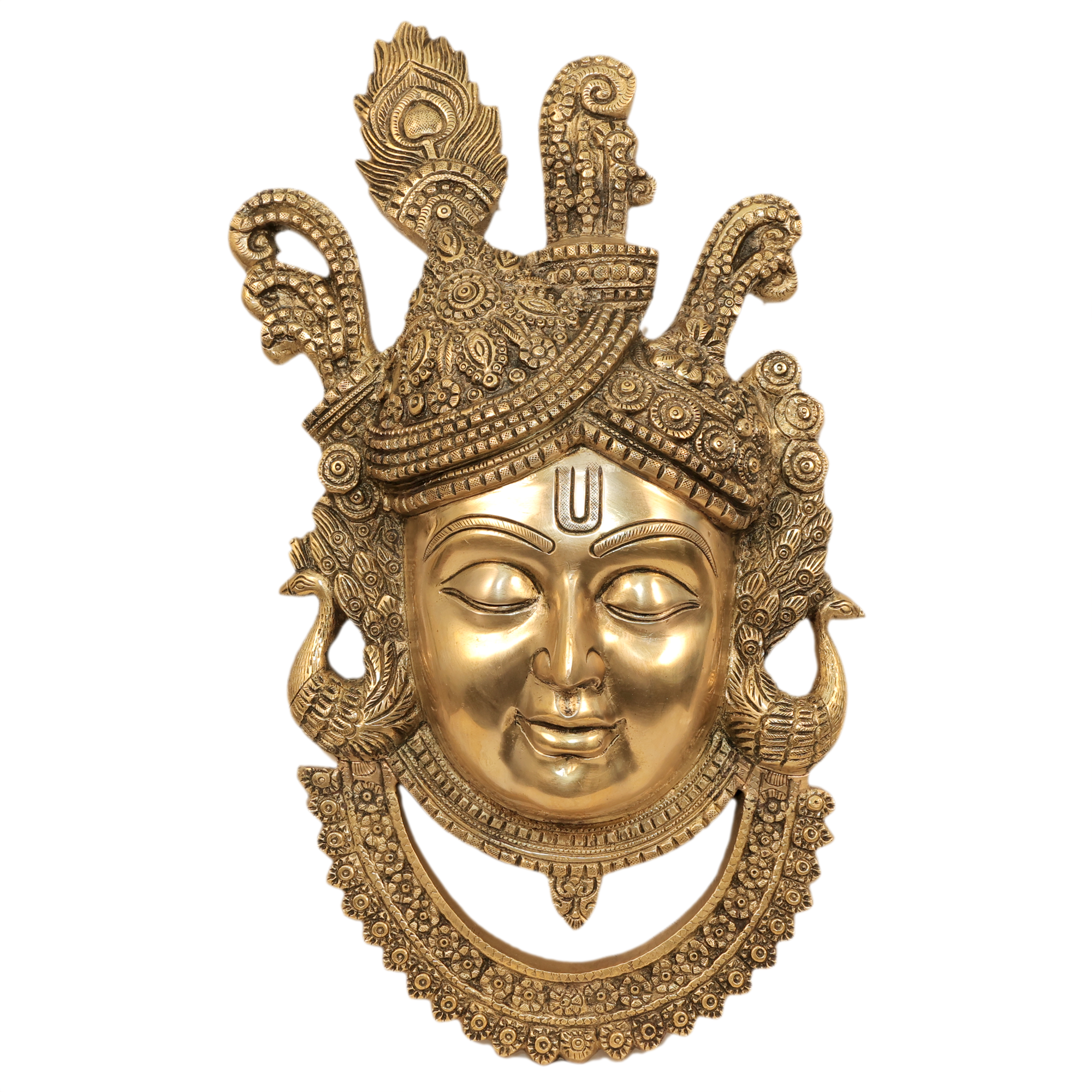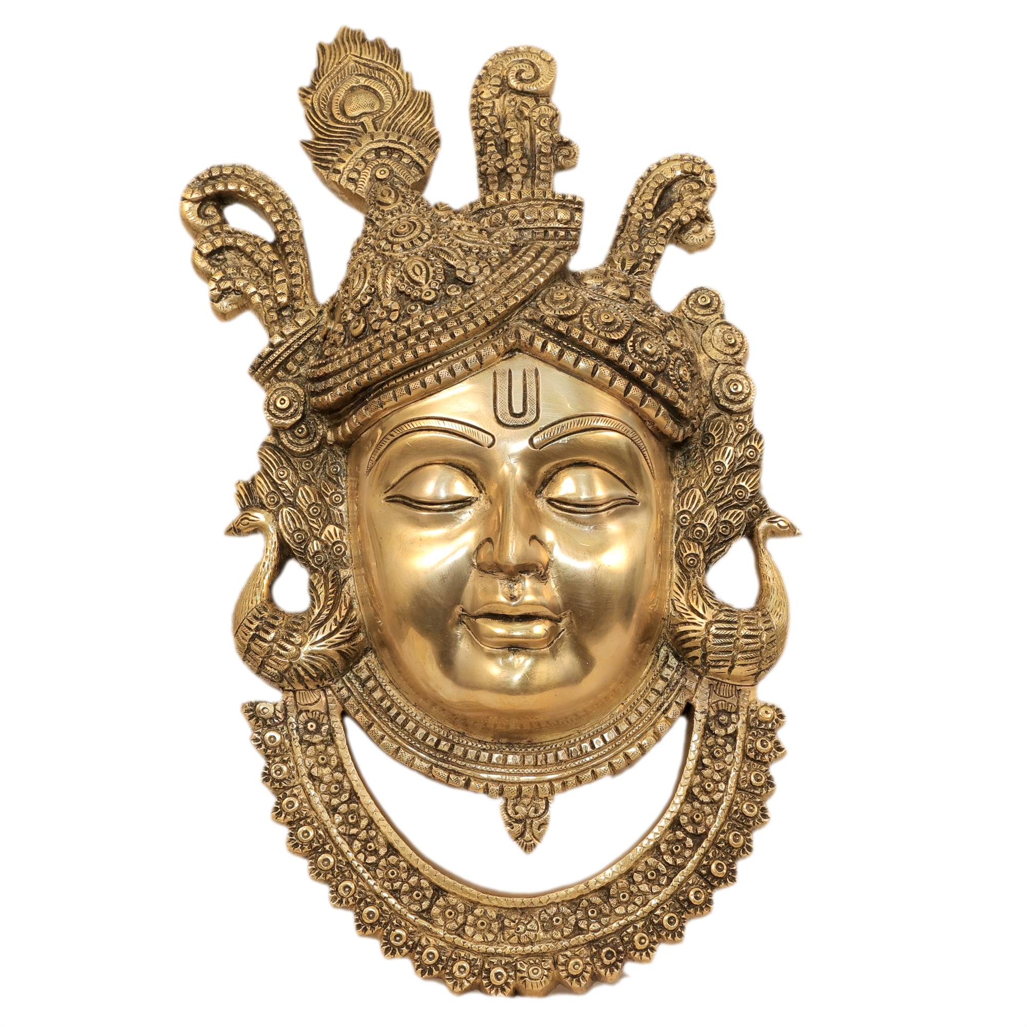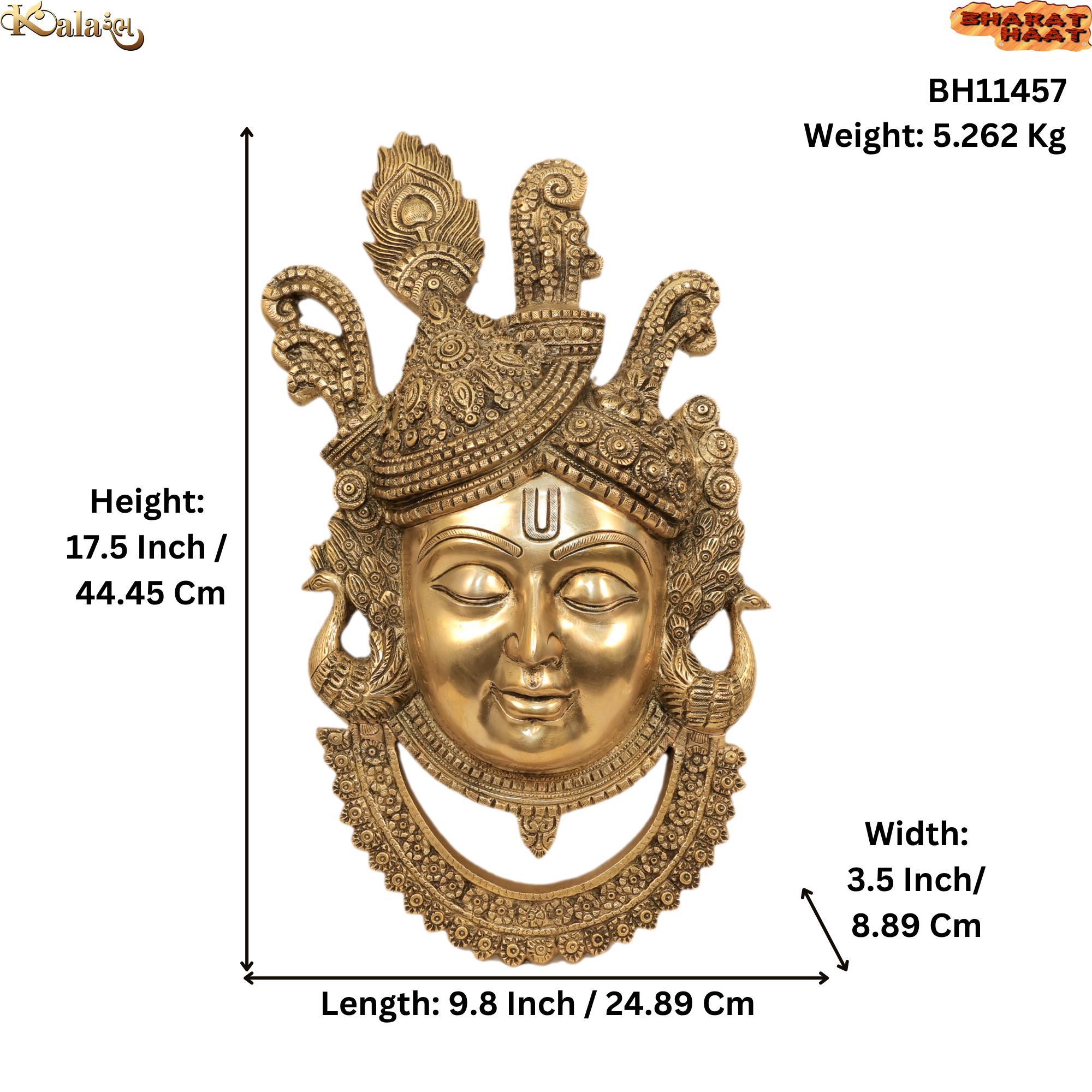 Brass Shrinathji Wall Hanging - Divine Krishna Showpiece for Spiritual Bliss & Prosperity | Handcrafted 1 Pc, 17.5 Inch