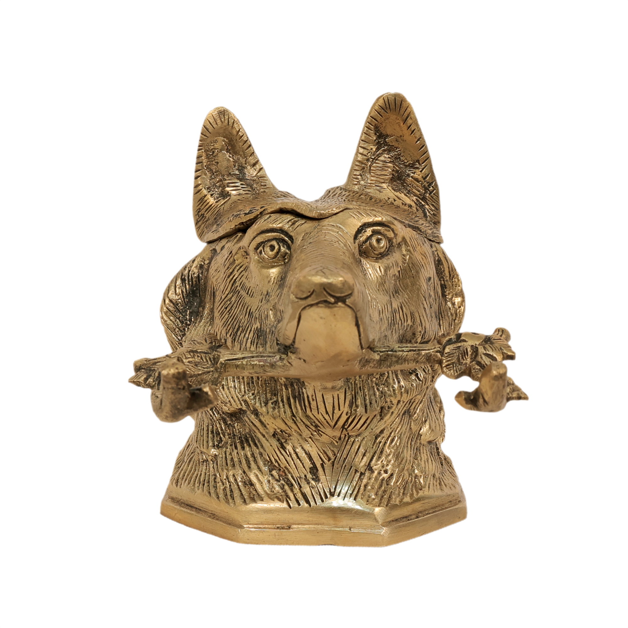 Unique Dog Design: Charming brass dog-shaped ink pot, symbolising loyalty and adding vintage charm to your decor.