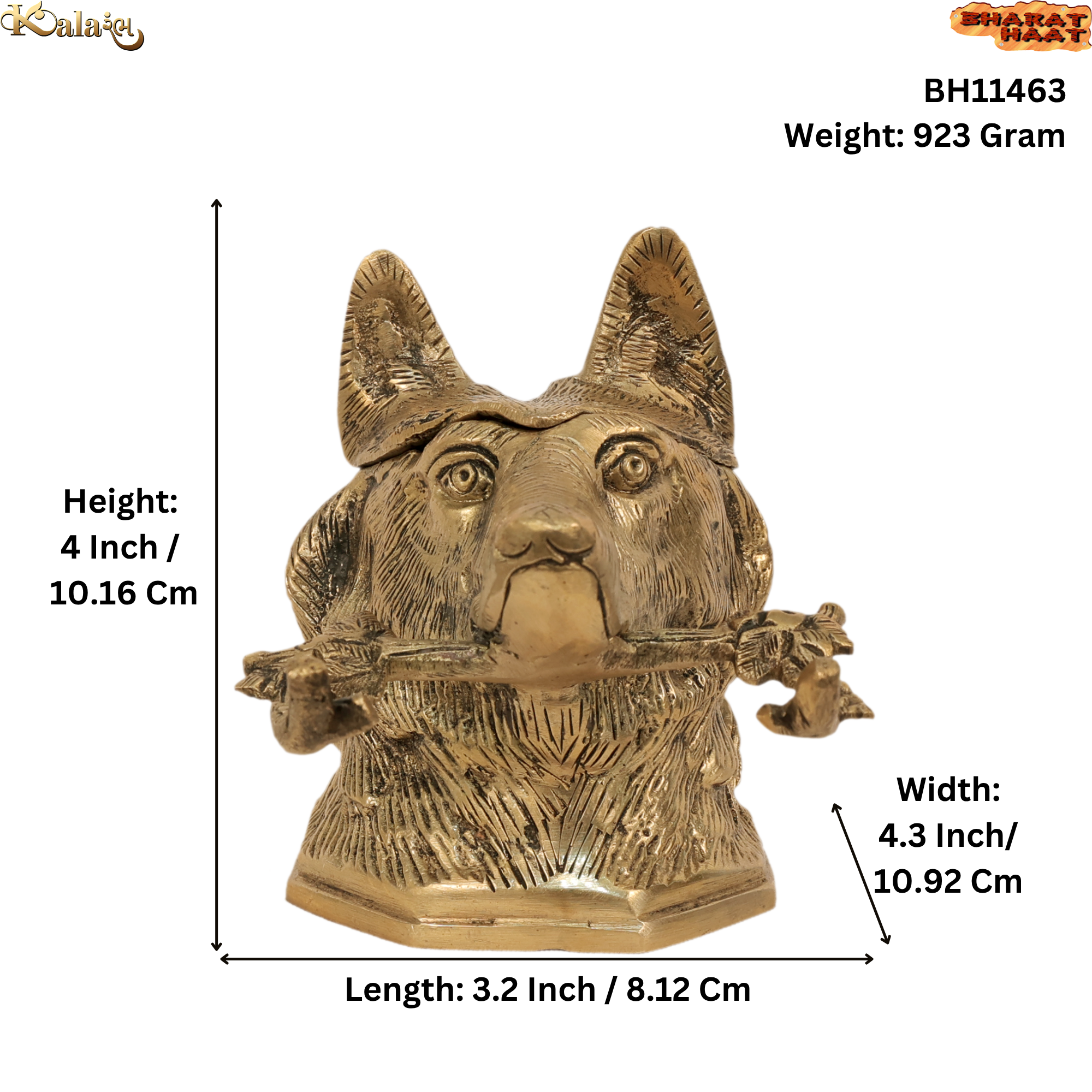 Brass Dog Ink Pot - Handcrafted Vintage Showpiece & Functional Decor | 4 Inch, 923 Gram, 1 Pc
