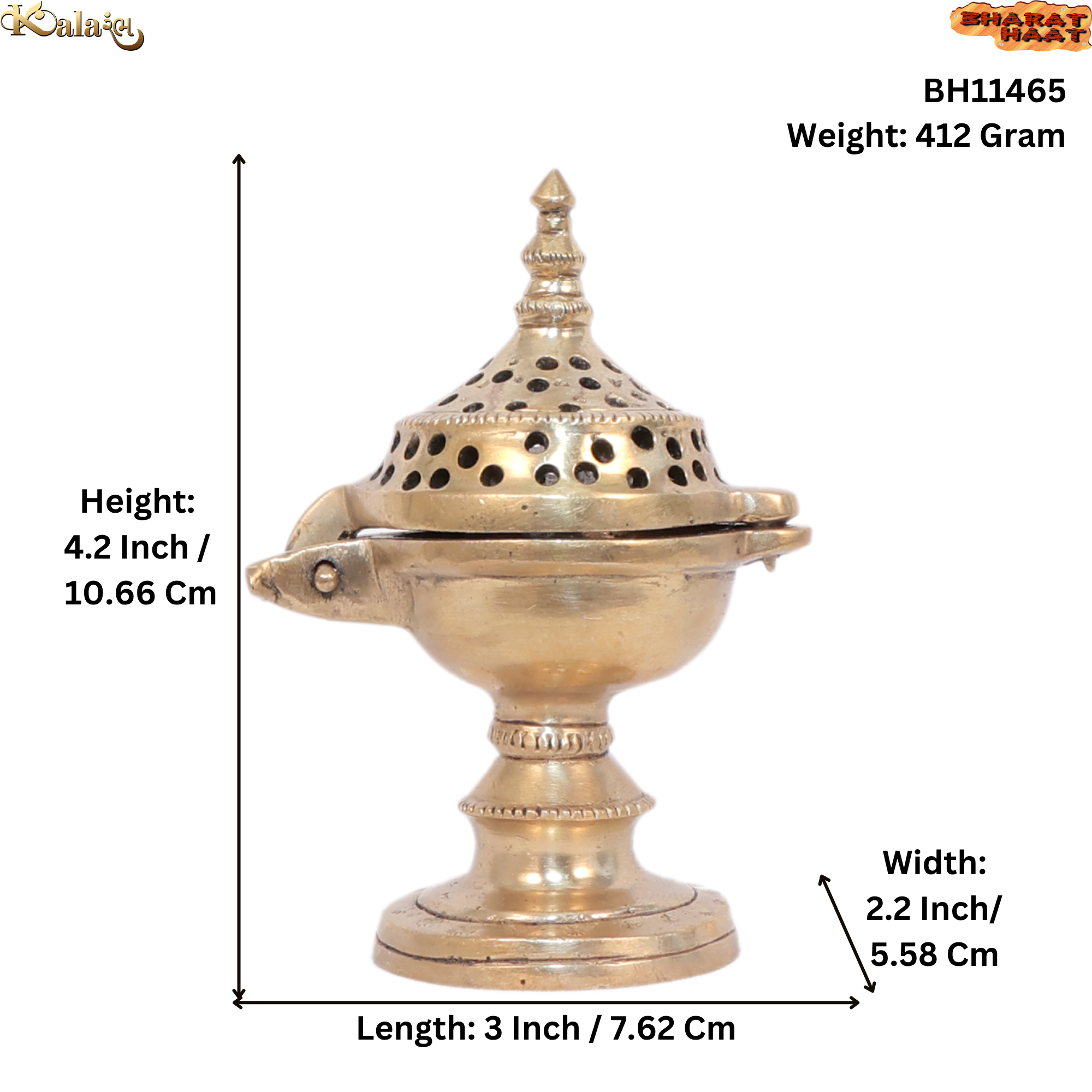 Brass Dhoop Dani - Handcrafted Incense Burner for Pooja & Home Decor | 412g Elevate your spiritual and home decor with our Brass Dhoop Dani, a handcrafted incense burner that exudes tradition and elegance. Made from pure brass, this 412-gram dhoop dani measures 3 x 2.2 x 4.2 inches (7.62 x 5.58 x 10.66 cm), making it perfect for pooja rooms, meditation corners, or as a decorative piece. Its intricate design reflects Indian craftsmanship, ideal for burning dhoop, incense sticks, or cones to create a serene atmosphere.Traditional Aroma Holder, This dhoop dani ensures safe and mess-free burning, letting the soothing aroma fill your space. Whether for daily prayers or festive occasions, it’s a must-have for every home. Its compact size fits anywhere, and the sturdy build ensures long-lasting use. Care tip: Clean gently with a soft cloth to keep its shine intact. Gift it to loved ones or add it to your collection for a touch of heritage.