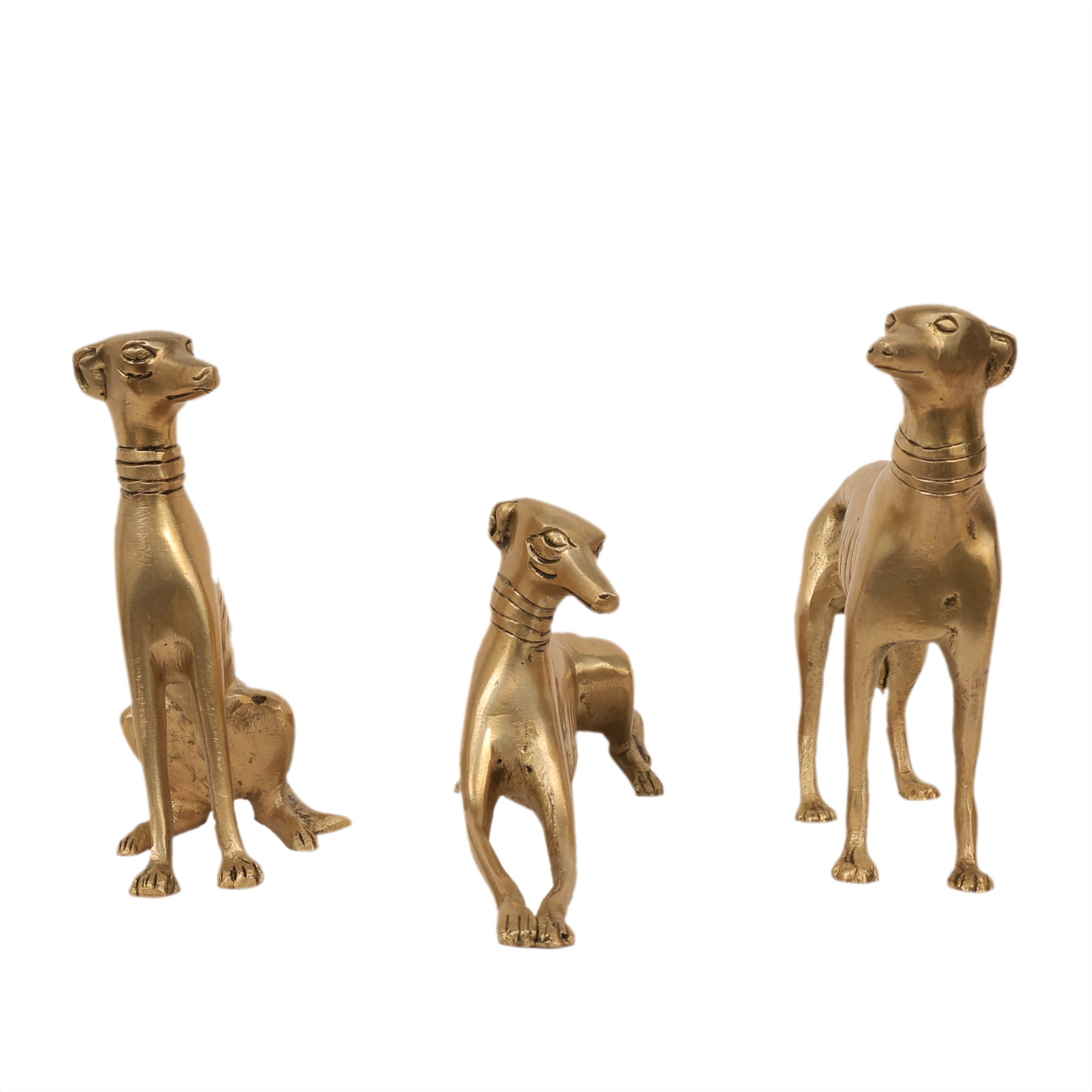 Premium Brass Dog Set – 3 Pcs | Decorative Showpiece for Home & Office. Add a touch of elegance and charm to your home décor with this Brass Dog Set of 3, a beautiful representation of loyalty and strength. Each figurine is handcrafted from premium solid brass, giving it a long-lasting shine and superior durability. The polished finish and fine detailing make these dog statues a perfect choice for display on table tops, showcases, office desks, or living room shelves.