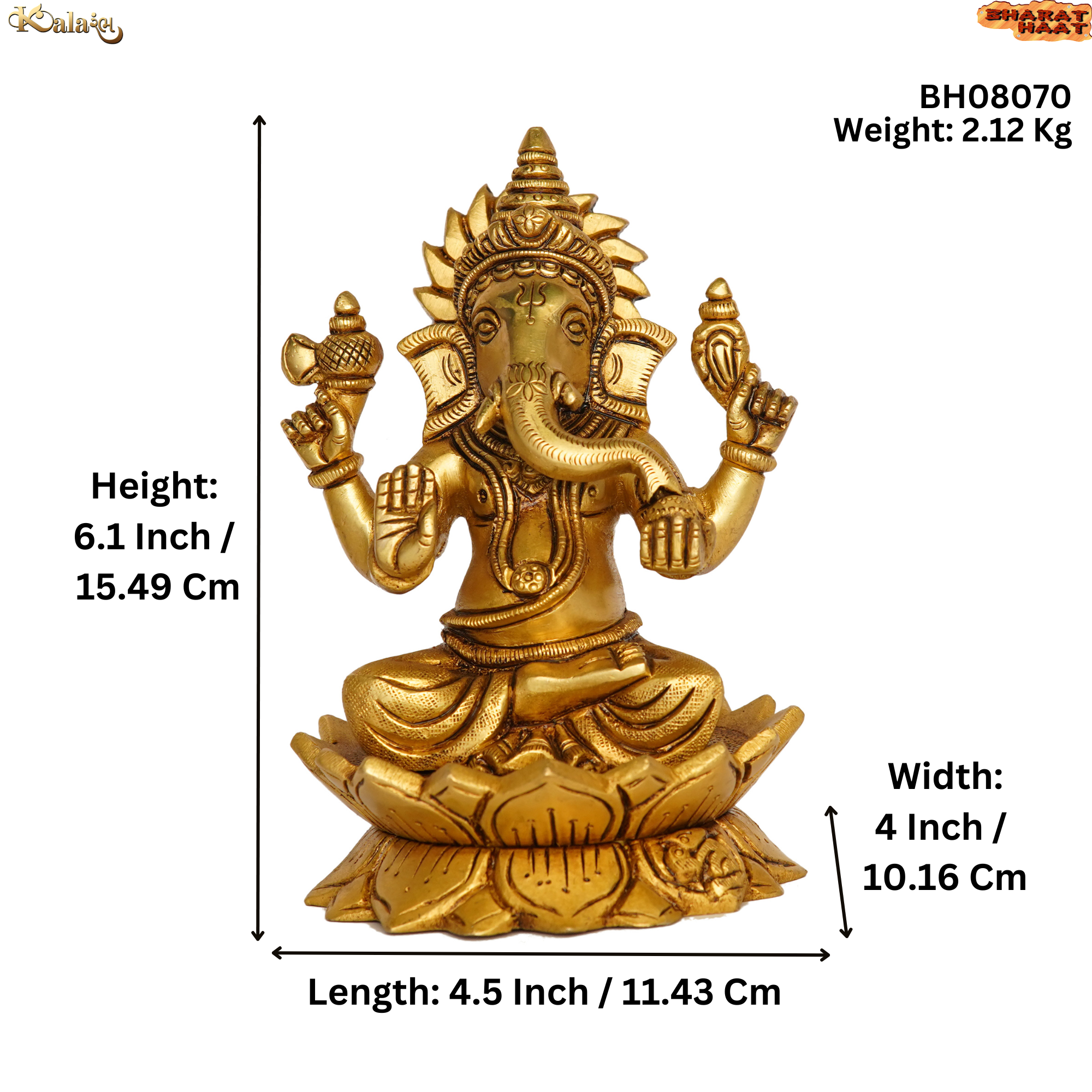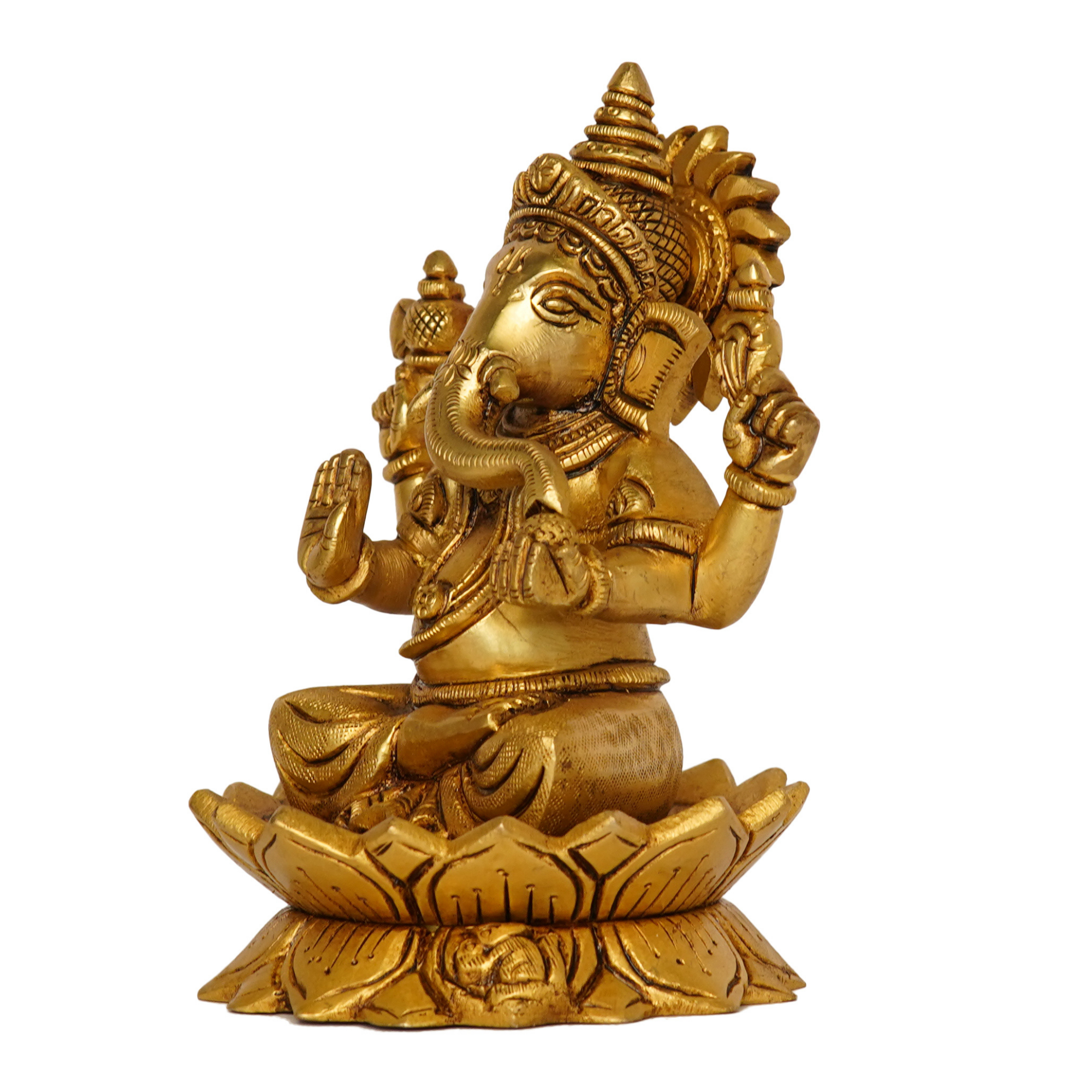 Handcrafted Brass Ganesha idol with detailed traditional design
