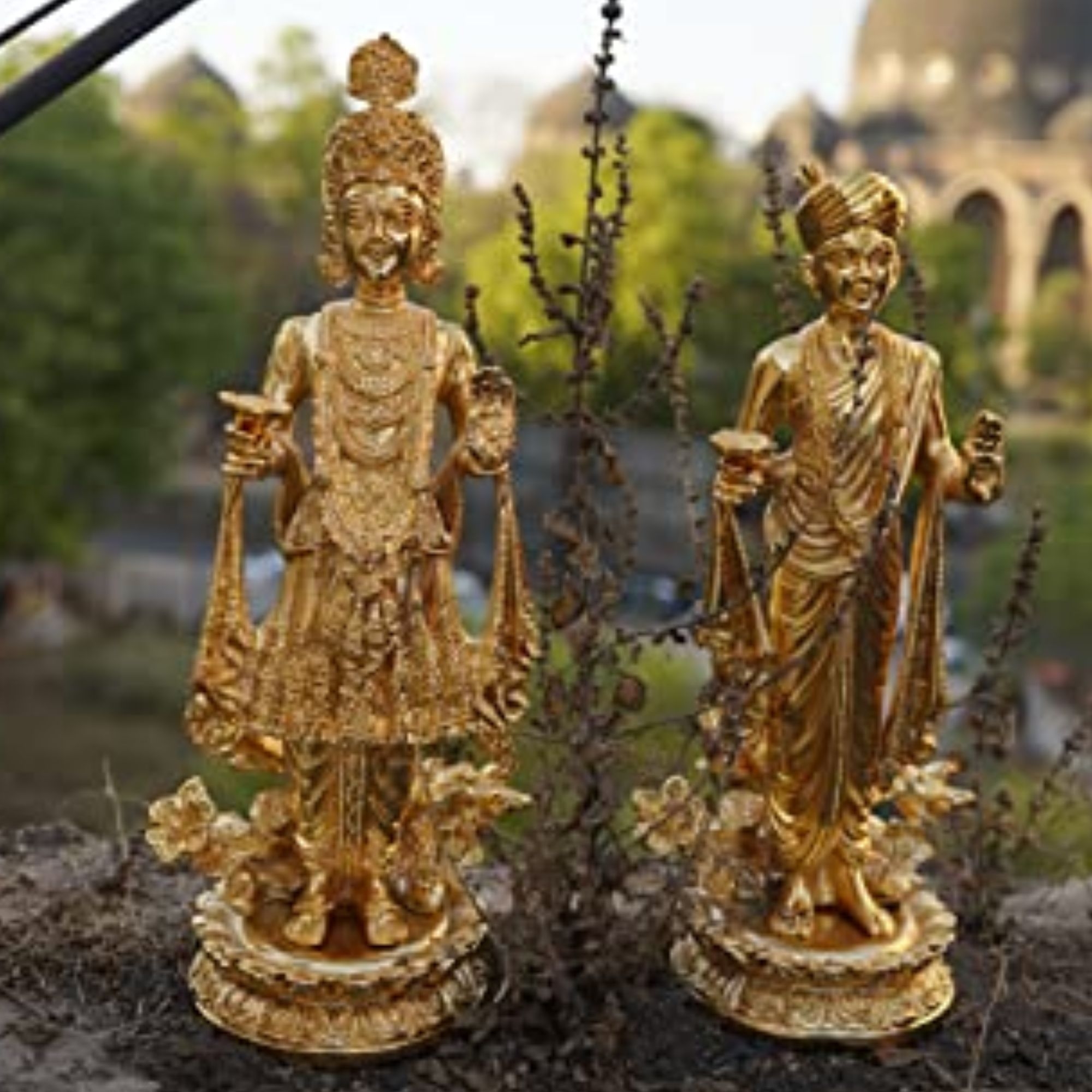 Beautiful Brass Lord Swaminarayan Pair with premium gold plating finish