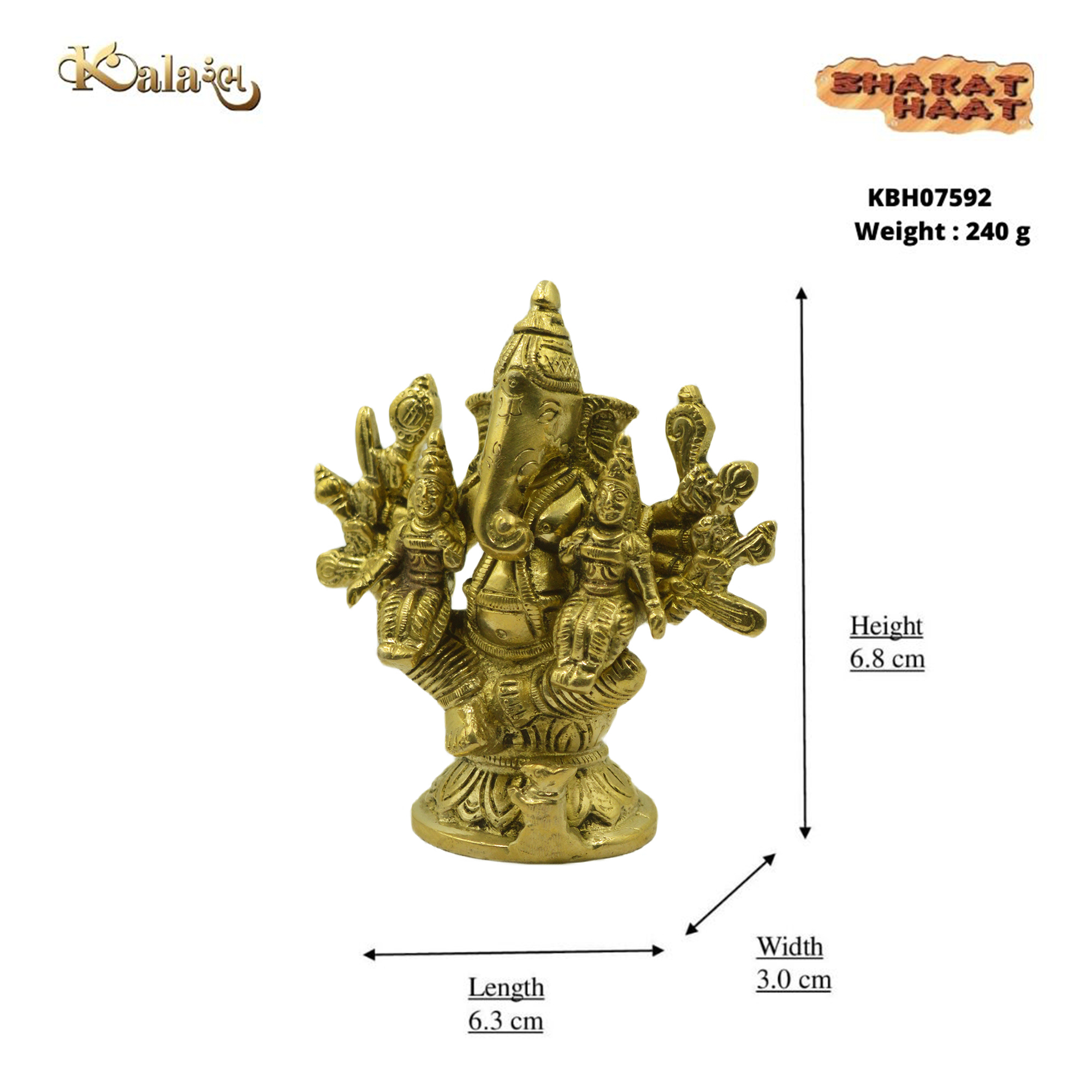 With dimensions of 2.5 x 1.2 x 2.7 Inch (6.35 x 3.04 x 6.85 cm) and a weight of 240 grams, this small yet elegant idol is easy to place in your home temple, study table, office desk, or car dashboard. Its durable brass construction ensures long-lasting shine and value, while its compact size makes it a thoughtful gift for festivals, weddings, housewarmings, or corporate occasions.