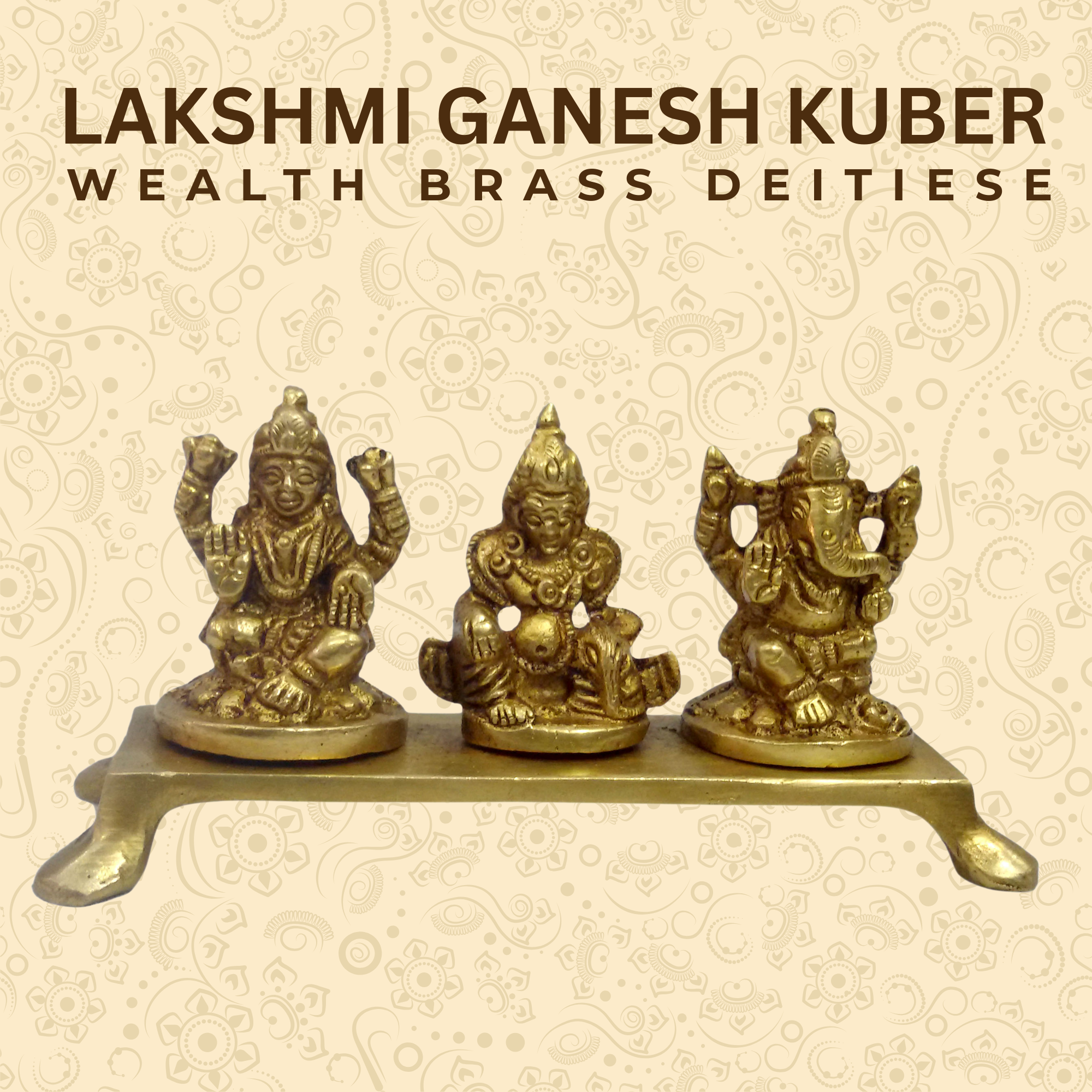 Handcrafted Brass Haat Ganesh, Laxmi & Kuber idol on bajat