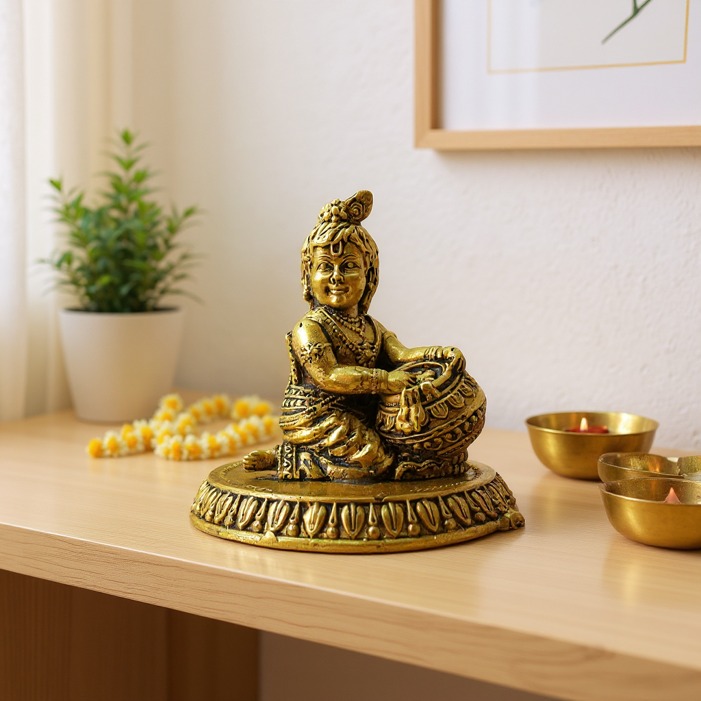 Ideal as a thoughtful gift for festivals like Janmashtami, Diwali, or housewarming ceremonies, this miniature idol blends spirituality with elegance. Place it on your altar, shelf, or personal workspace to invite blessings, devotion, and harmony into your surroundings.