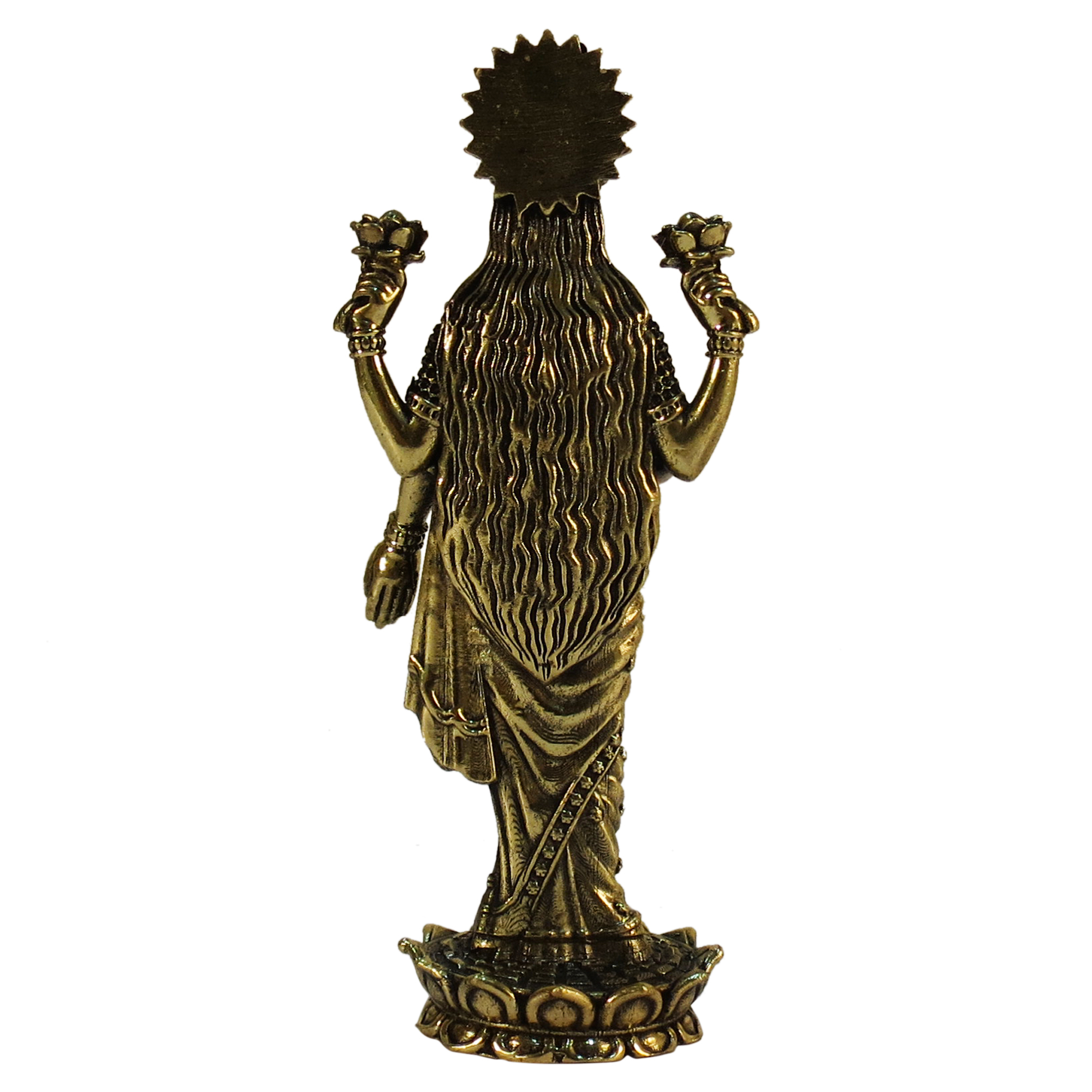 Crafted from premium solid brass, it is durable, sturdy, and polished to give a radiant, classic finish. Goddess Lakshmi, the harbinger of wealth, prosperity, and happiness, is intricately designed to reflect traditional artistry, making it not only a spiritual asset but also a decorative piece for your home or office.
