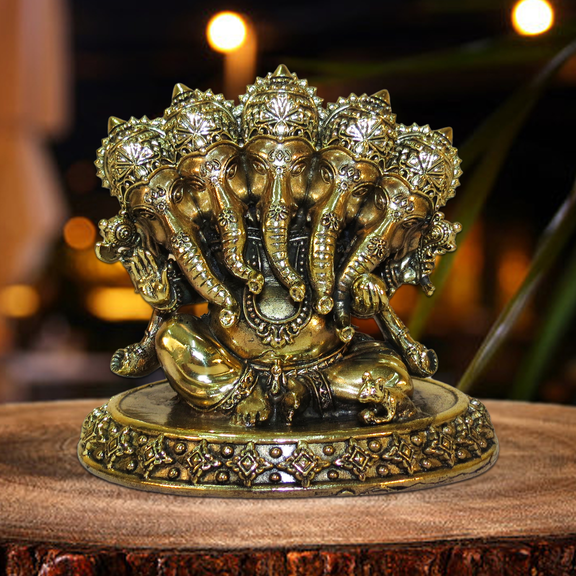- Handcrafted brass idol of Panchmukhi (Five-Faced) Lord Ganesh