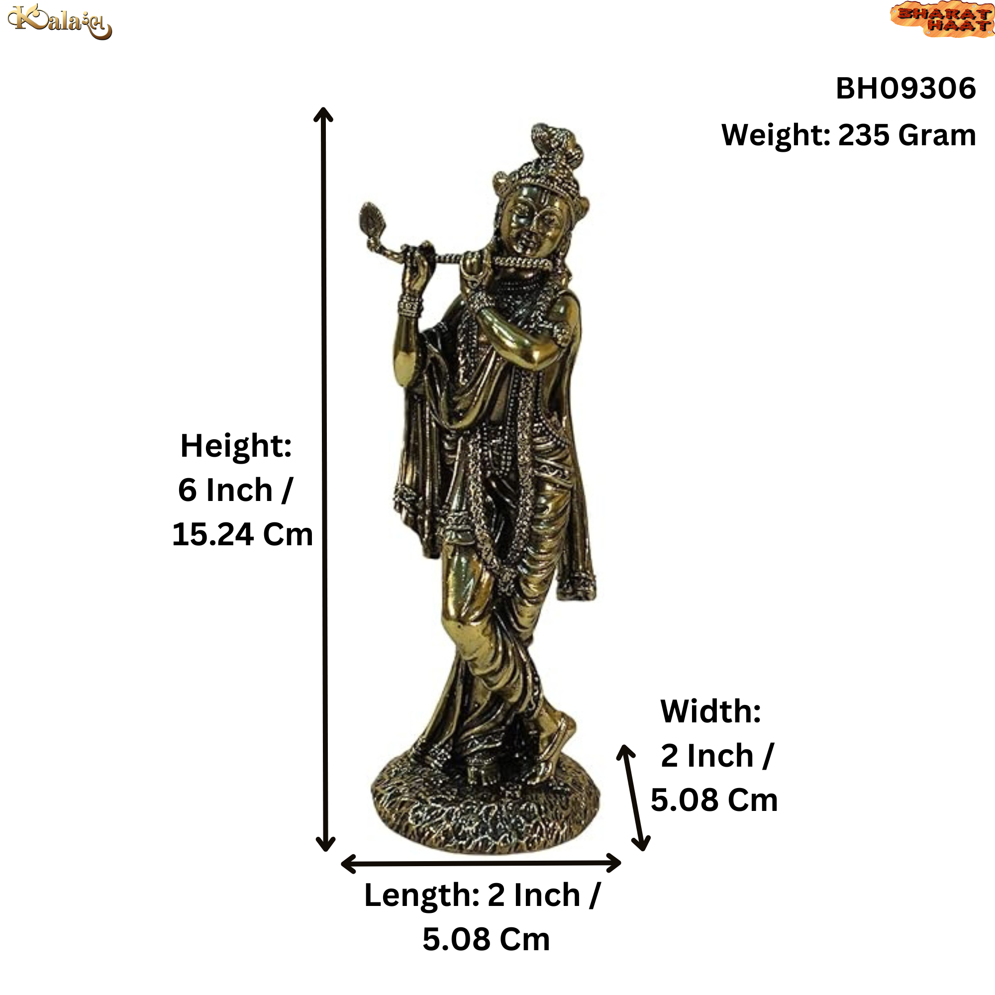 Brass Krishna Idol | Lord Krishna Statue for Pooja, Home Temple & Decor (2 x 2 x 6 Inch, 235 Gram), This beautifully crafted Brass Krishna idol represents Lord Krishna, the beloved deity of love, wisdom, and devotion. Made from high-quality brass, the idol reflects traditional craftsmanship with intricate details, making it a perfect spiritual and decorative piece for your home or office.