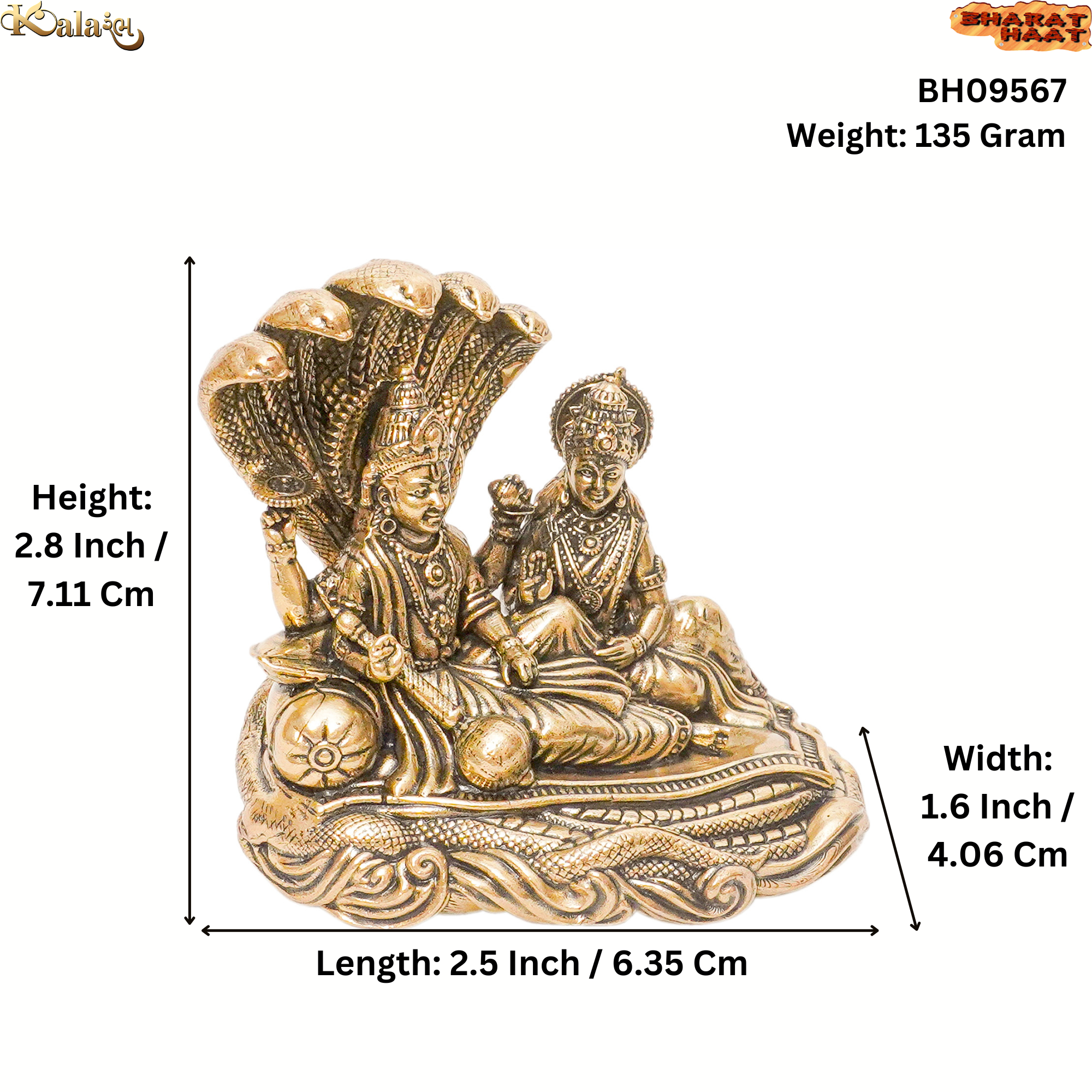 - Handcrafted brass idol of Lord Vishnu with Goddess Laxmi