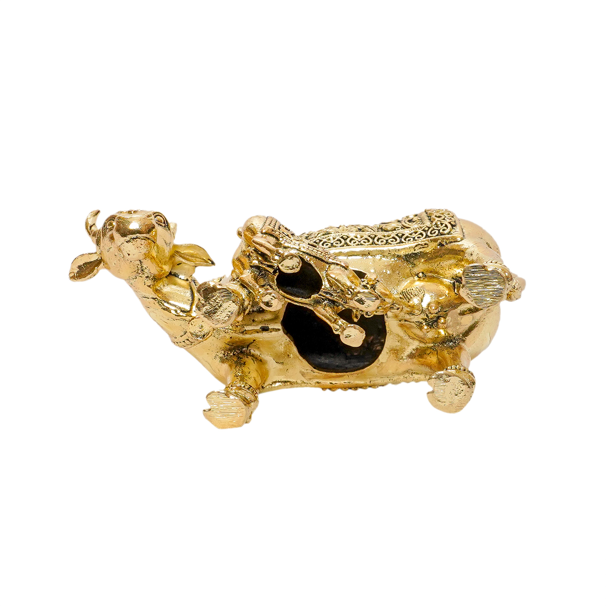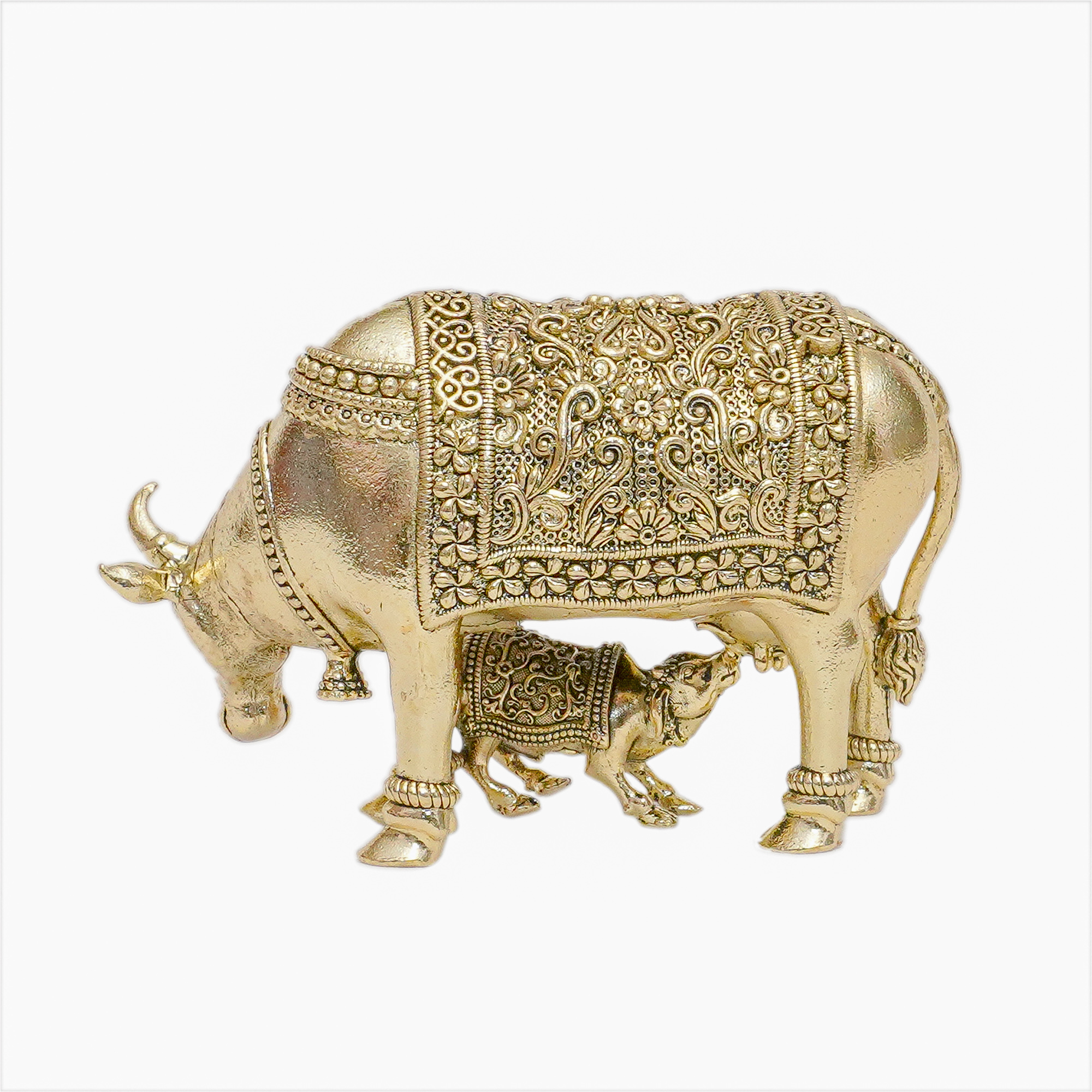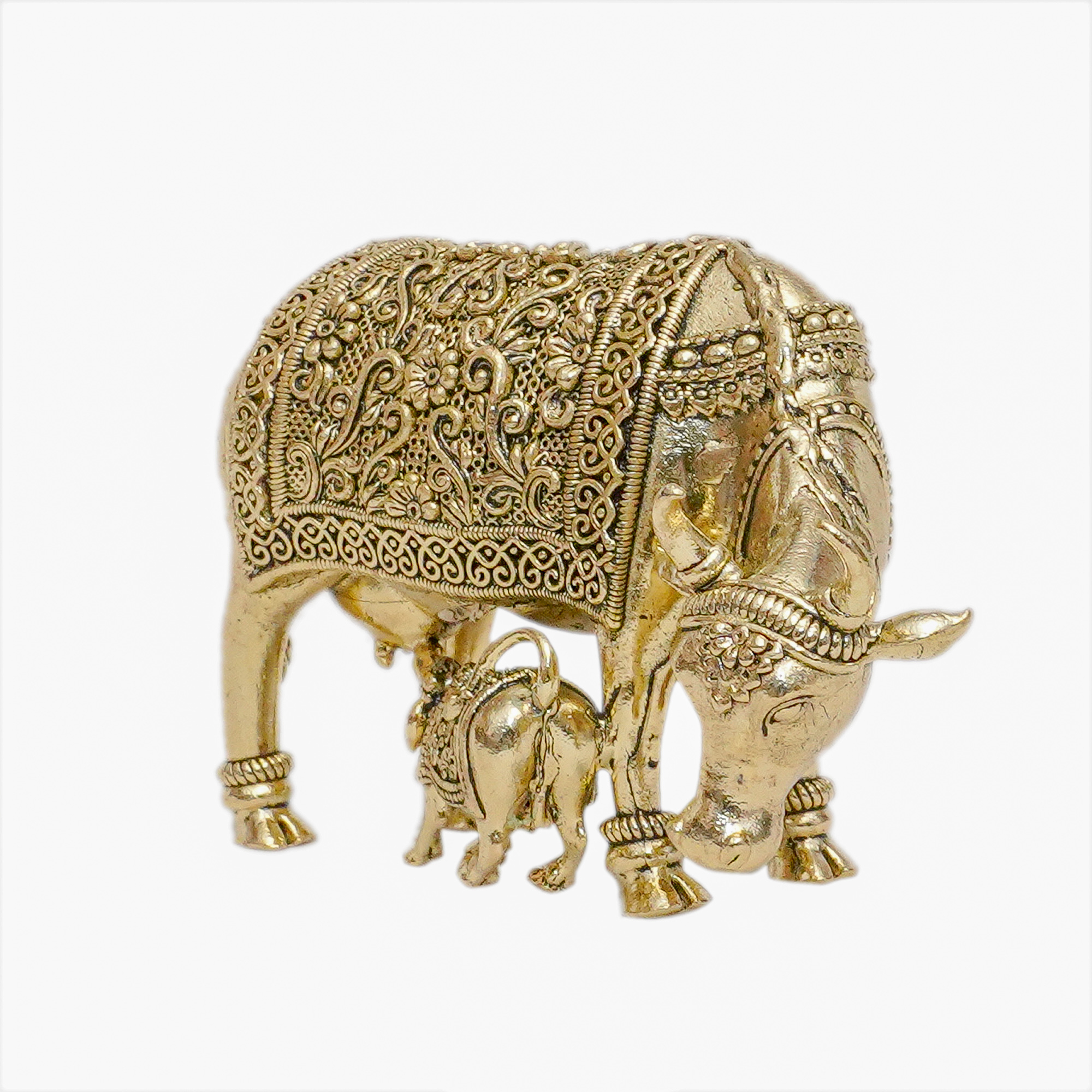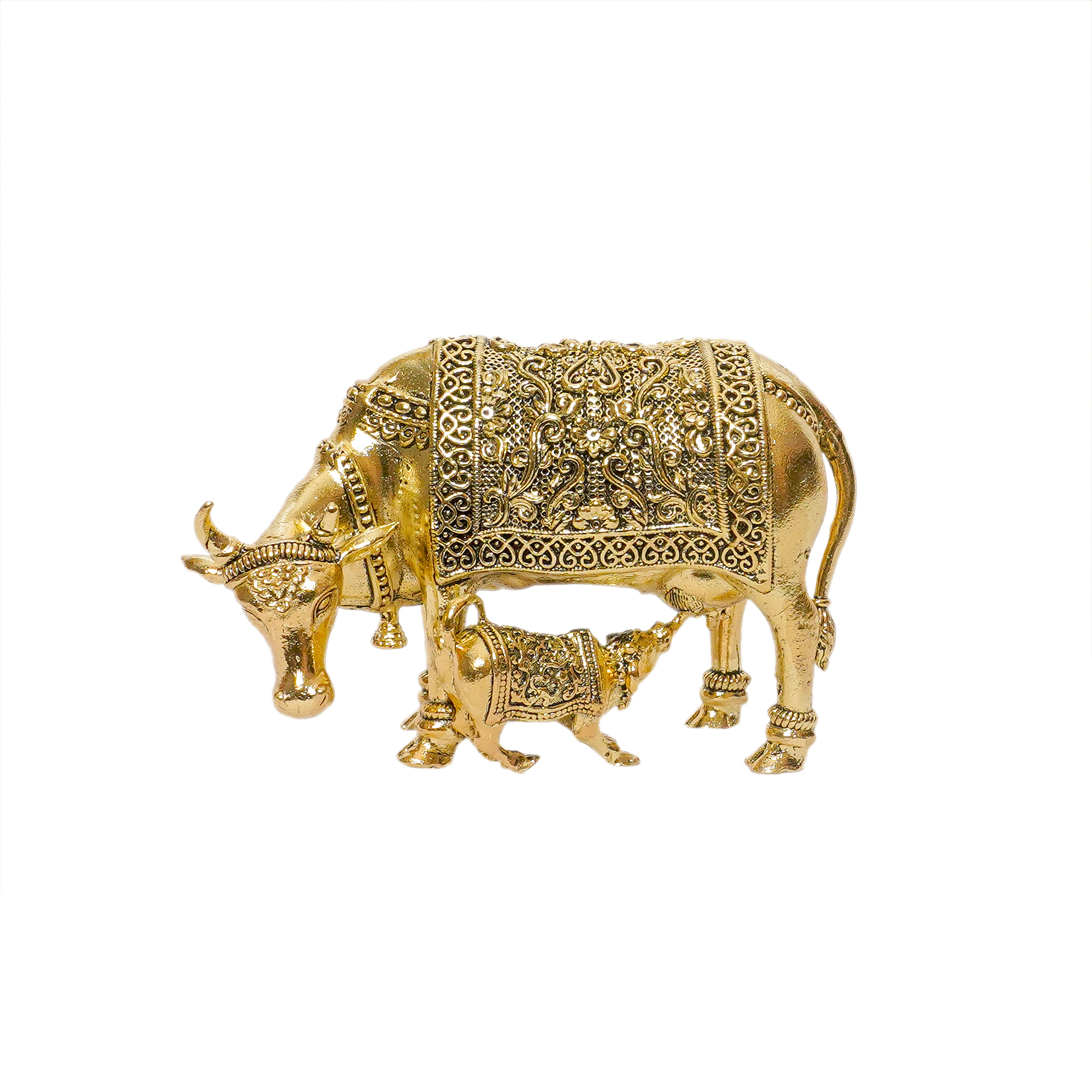 Brass Cow & Calf | Handcrafted Brass Cow and Calf Figurine Set for Home Décor & Pooja (7.5 x 1.5 x 2.4 Inch, 490 Gram, 2 Pcs), This exquisite Brass Cow & Calf figurine set is a beautifully handcrafted representation of the nurturing bond between a cow and her calf. Made from premium quality brass, these idols showcase intricate detailing, making them a perfect blend of spirituality, culture, and décor.