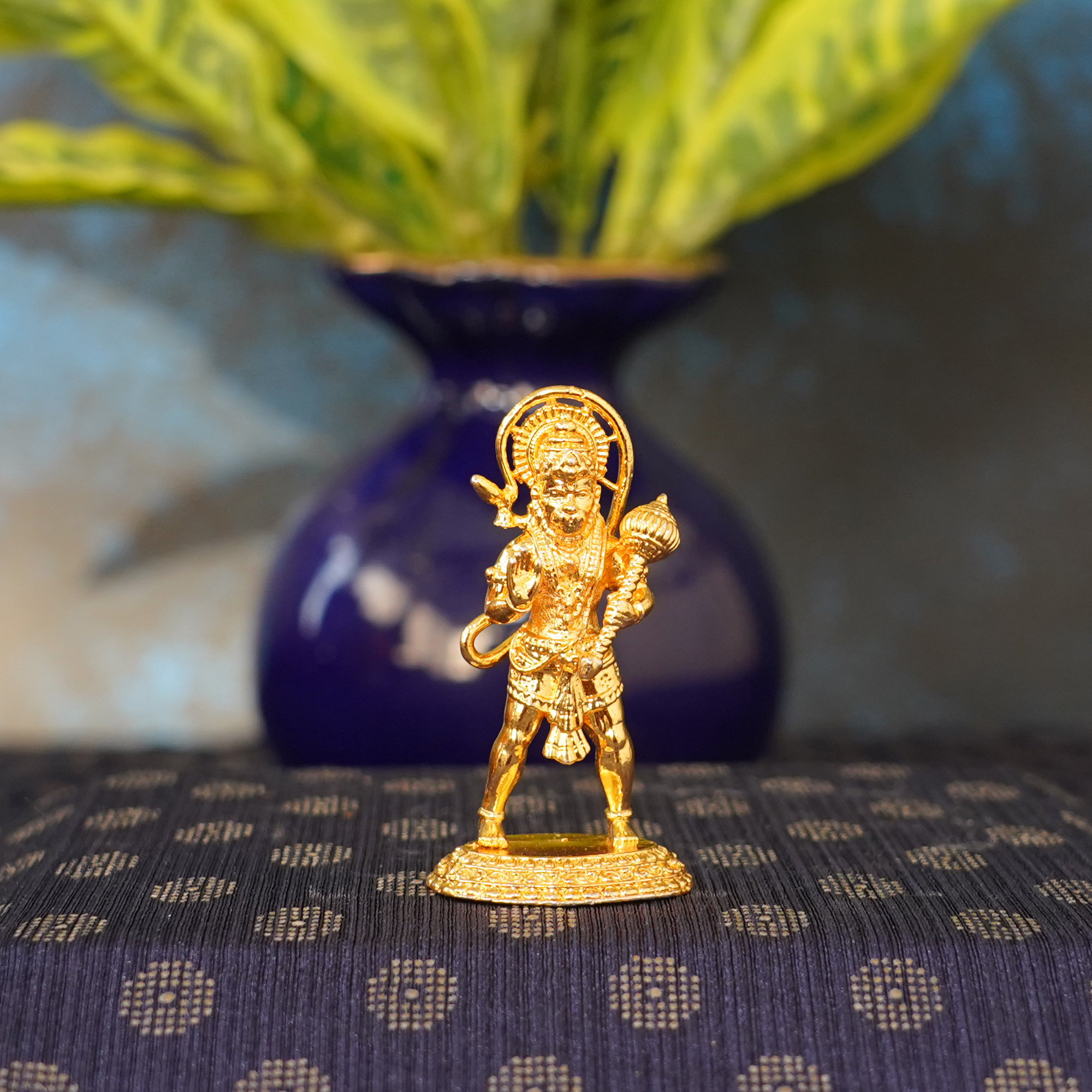 - Handcrafted miniature brass Hanuman idol with detailed finish