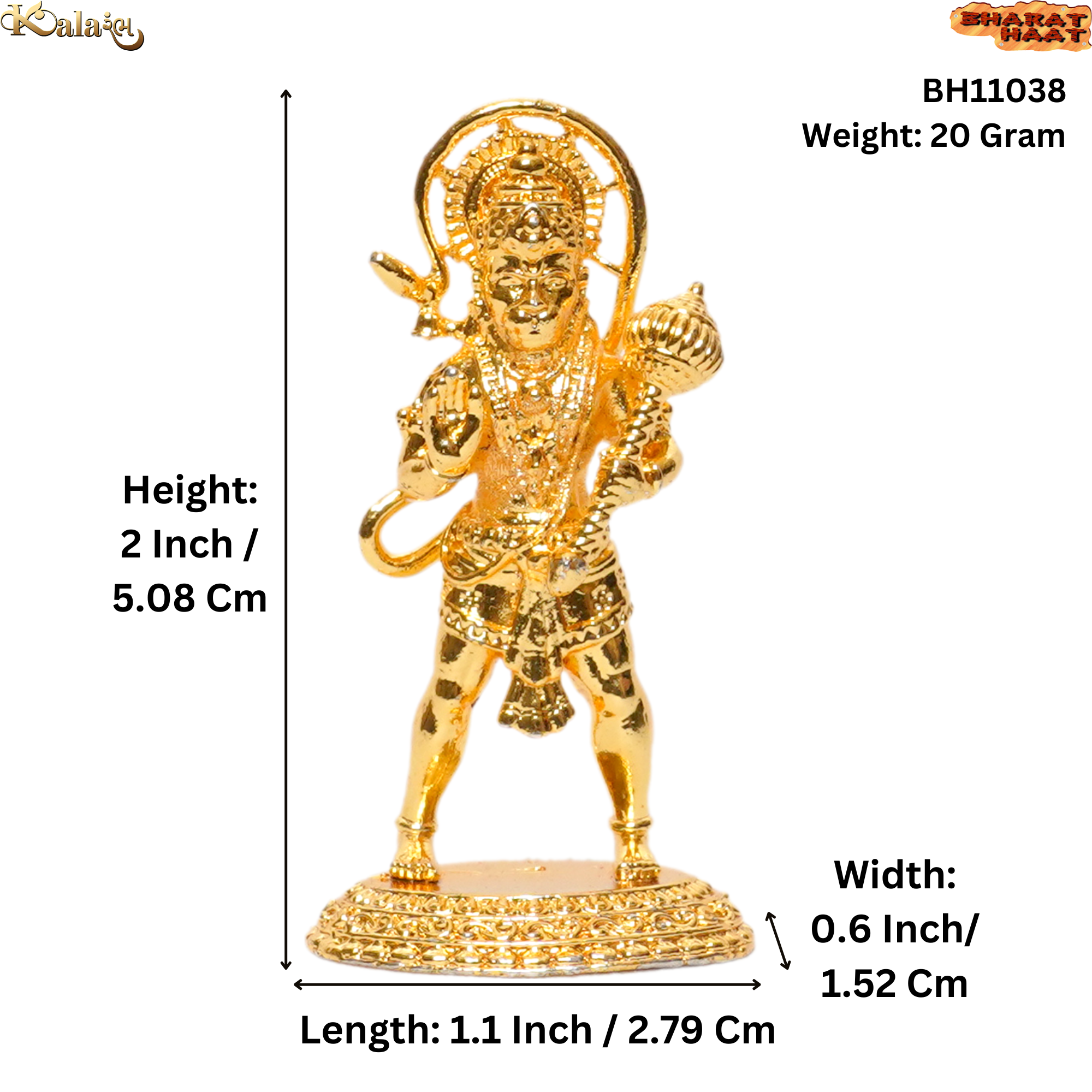 Brass Hanuman Idol | Miniature Lord Hanuman Statue for Pooja, Home Temple & Gifting (1.1 x 0.6 x 2 Inch, 20 Gram), This Brass Hanuman Idol is a finely handcrafted piece, made with durable brass and finished with intricate detailing. Lord Hanuman, revered as the symbol of strength, courage, and devotion, is worshipped for protection from negative energies and to bless devotees with power, wisdom, and success.