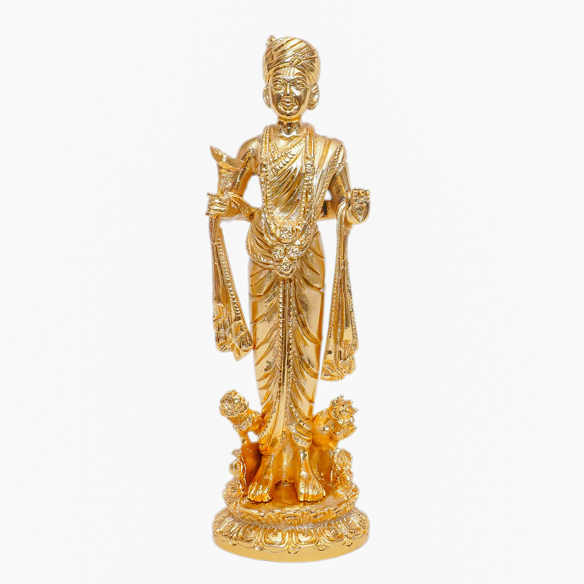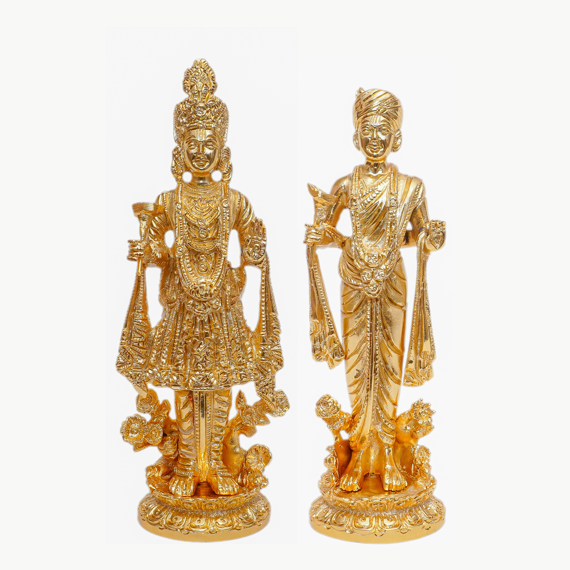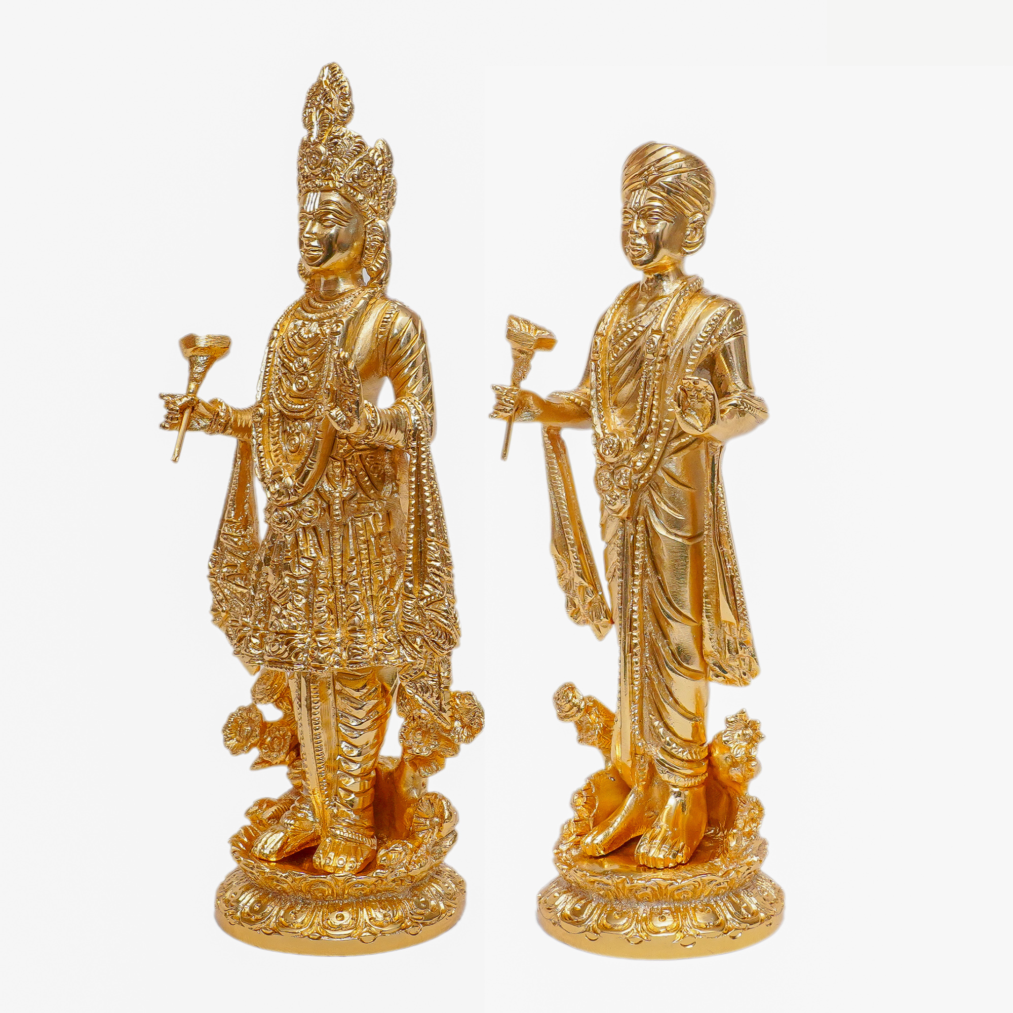 - Handcrafted brass Swaminarayan pair with intricate detailing