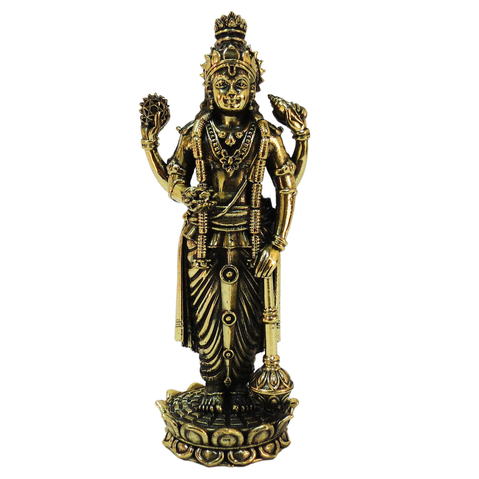 Handcrafted brass Lord Vishnu idol with fine detailing