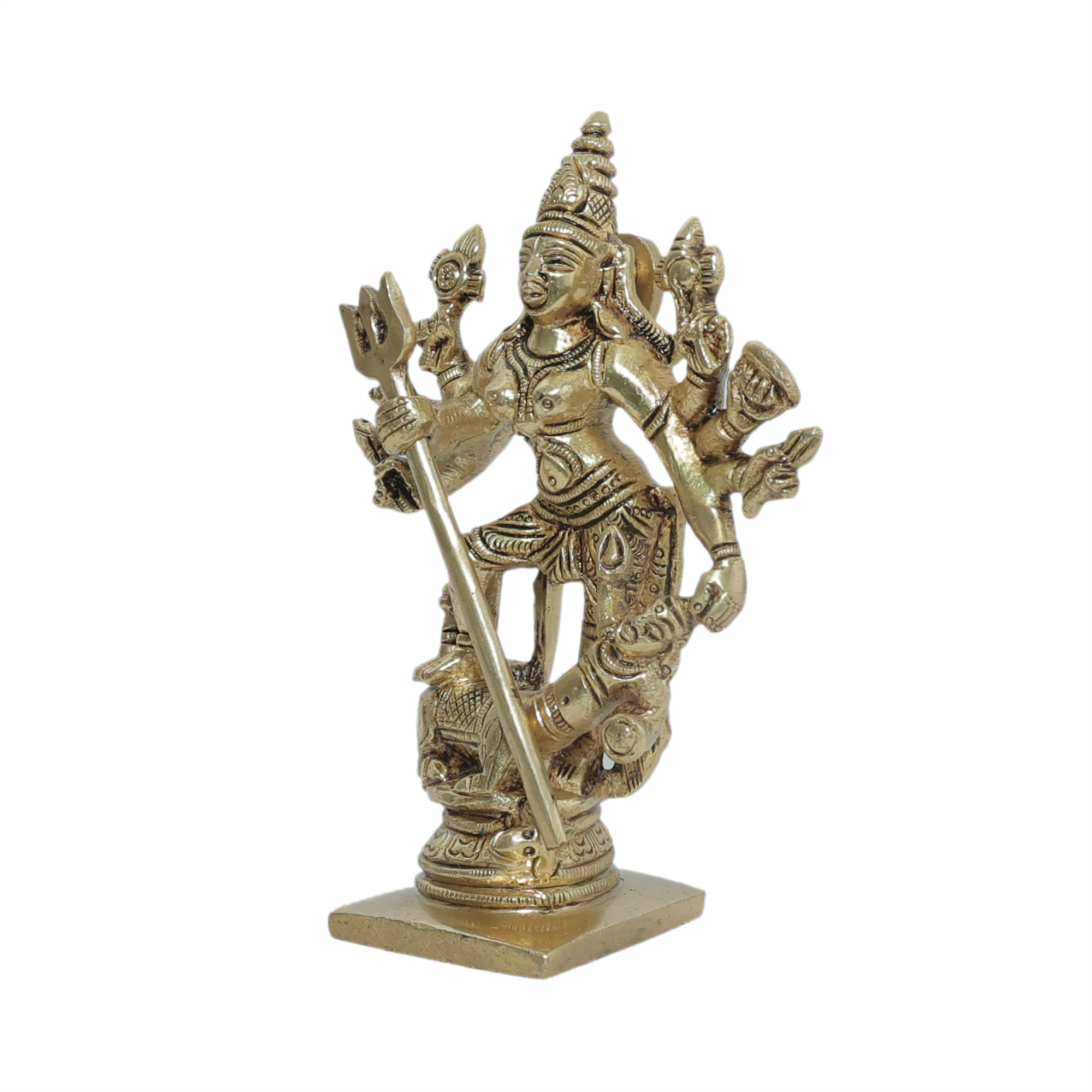 Brass Mahishasura Mardini Idol - Goddess Durga Demon Slayer Statue for Home Temple