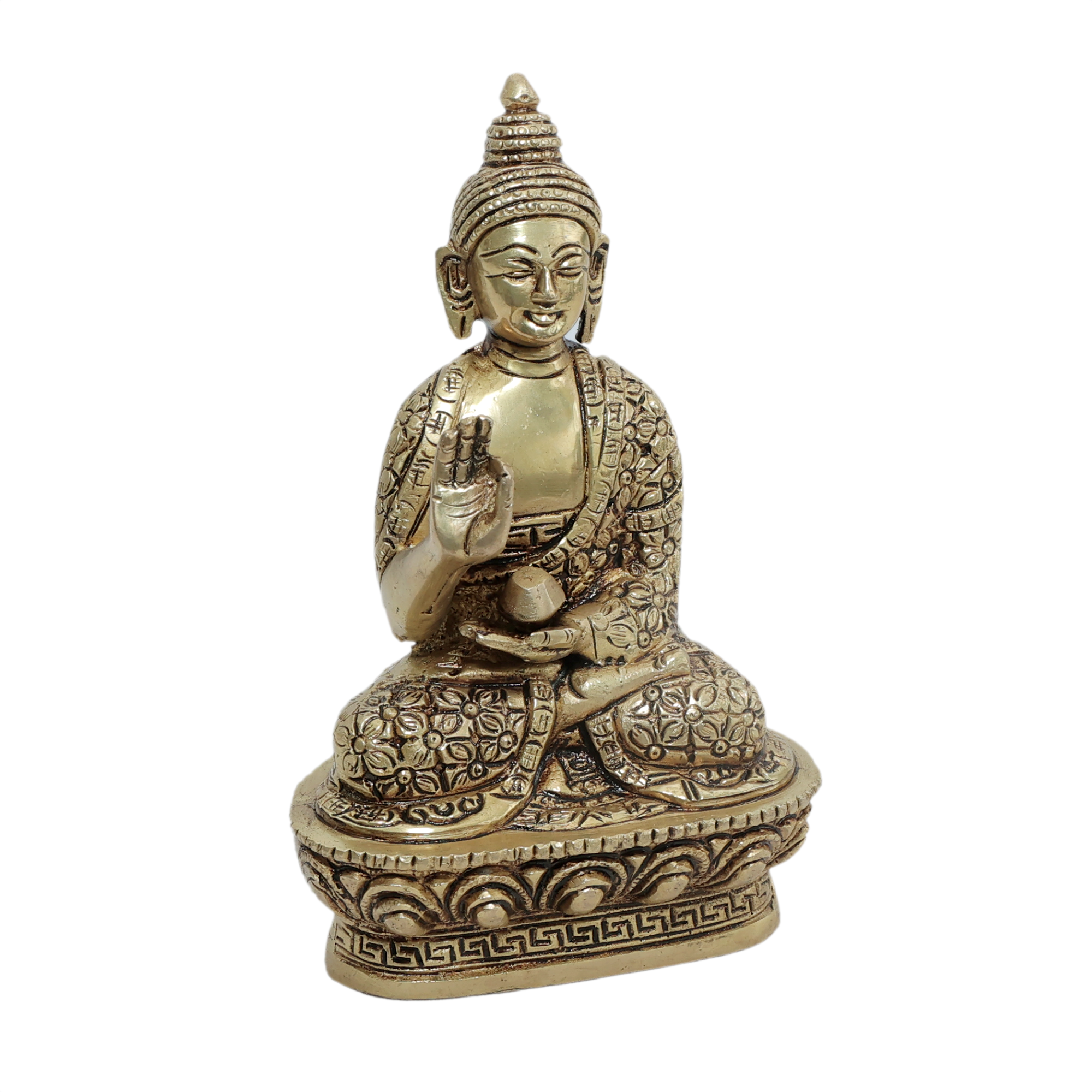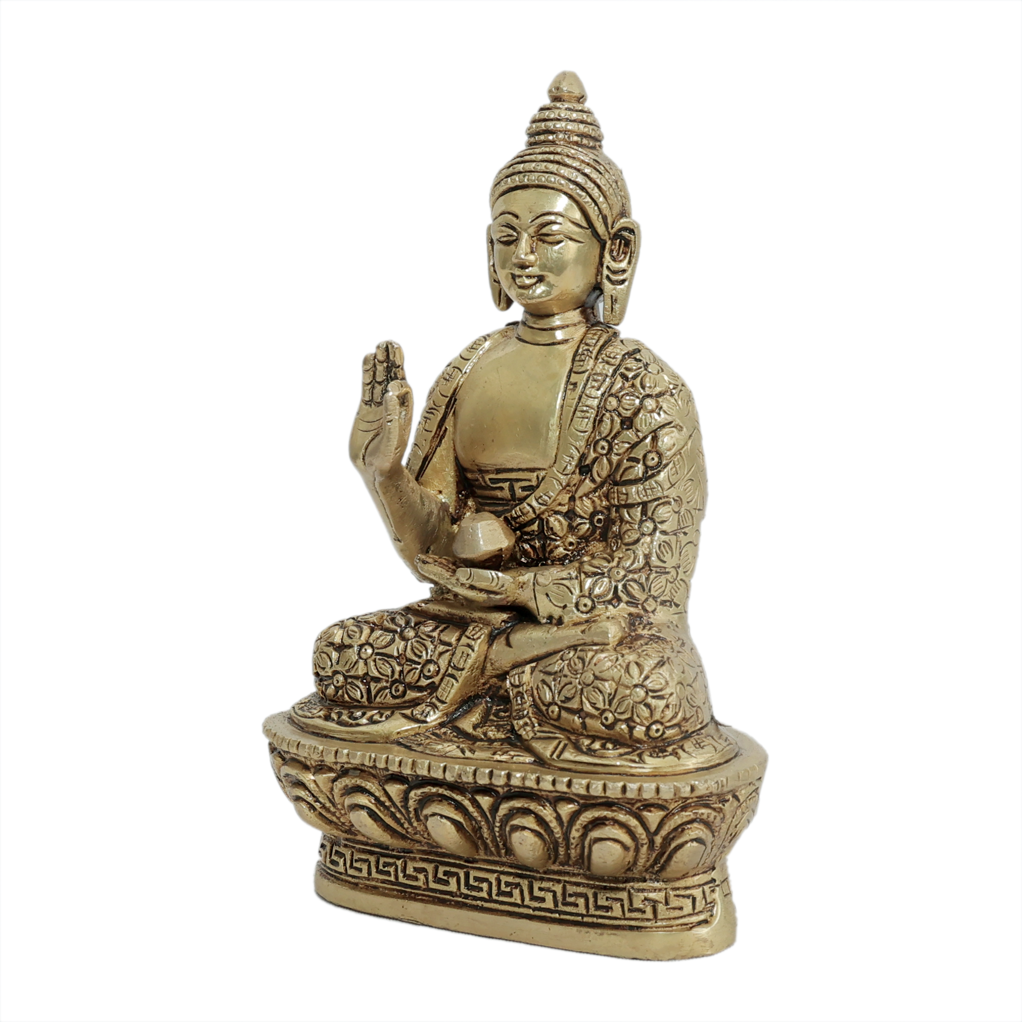 Transform your living space into a sanctuary of peace and enlightenment with this magnificent Brass Buddha Statue. Standing at an impressive 6.6 inches tall, this exquisitely crafted Gautam Buddha idol radiates serenity and spiritual wisdom, making it a perfect addition to your meditation room, home temple, office, or living area.