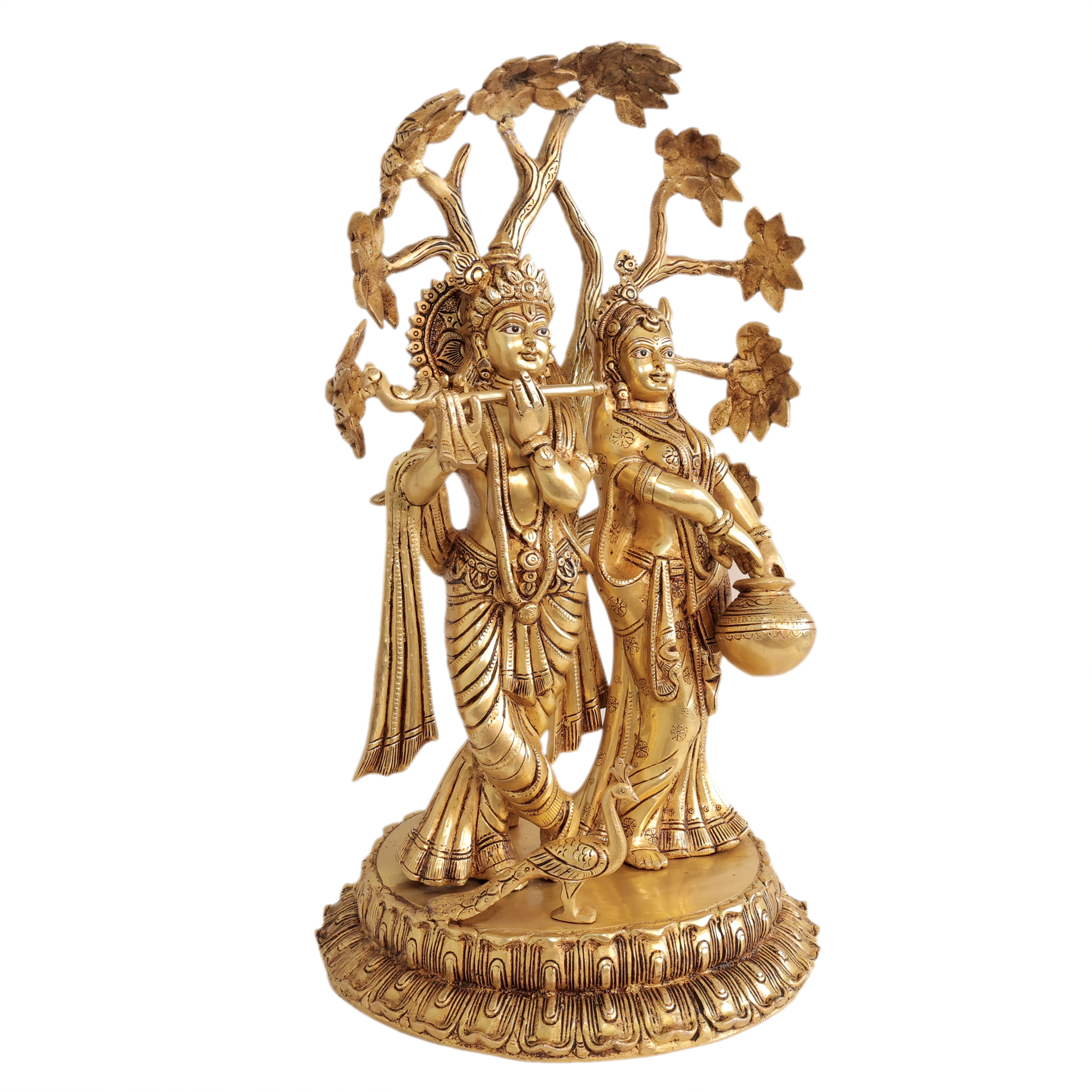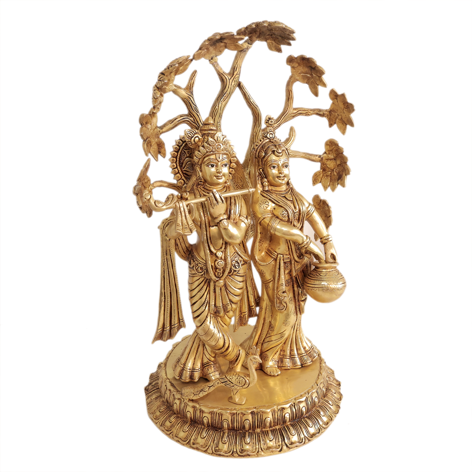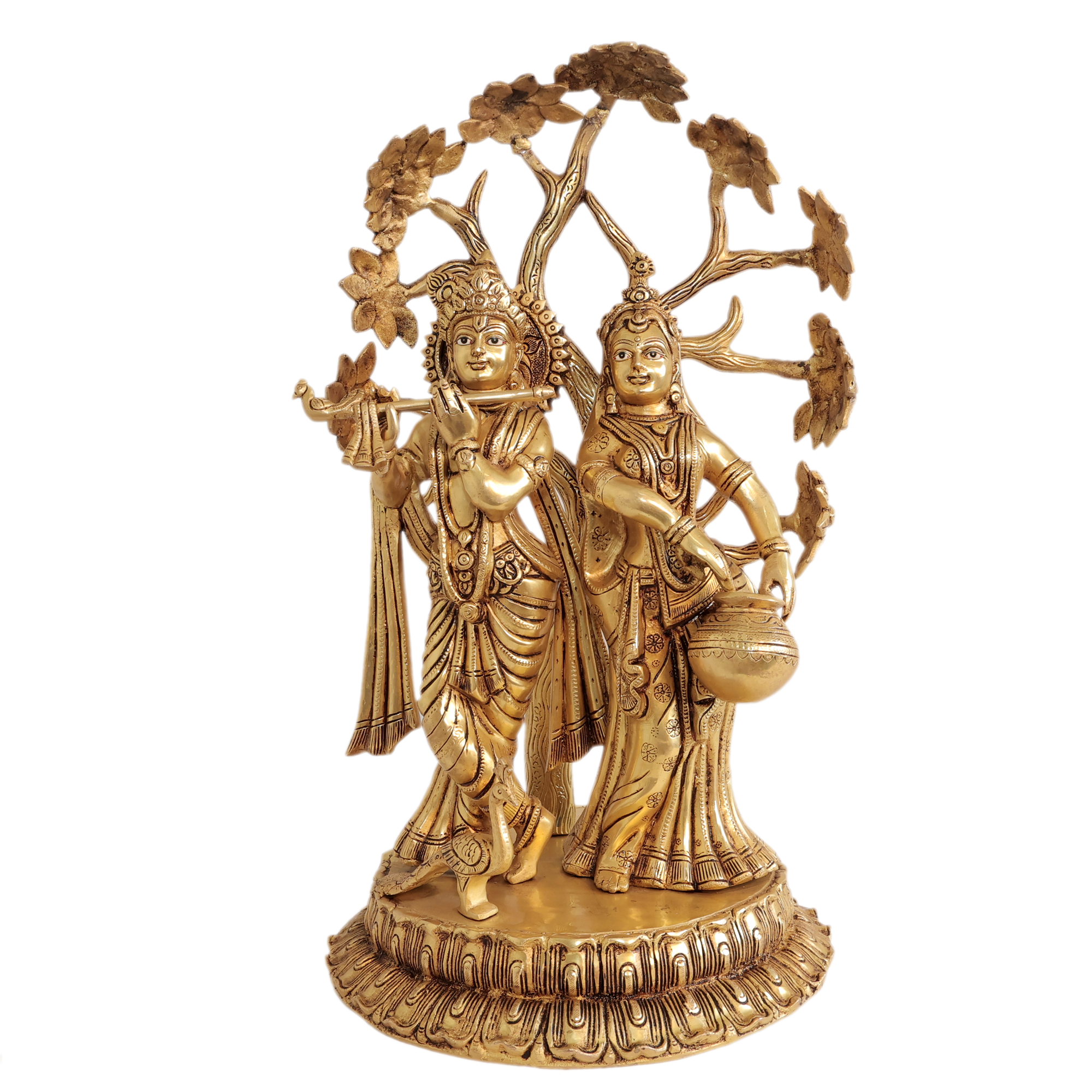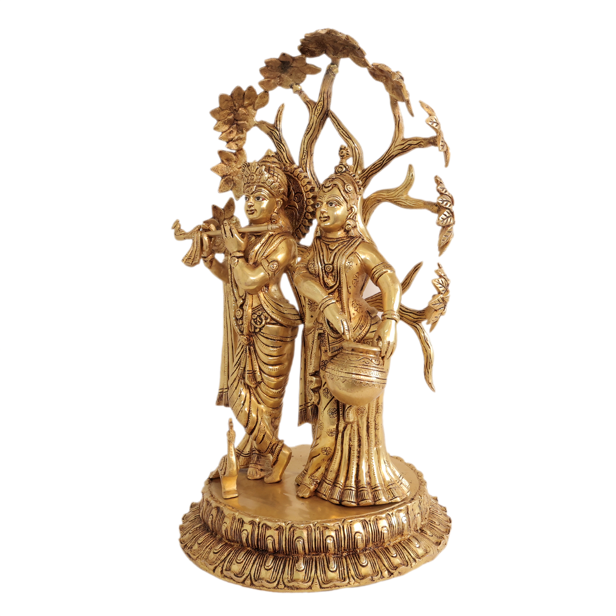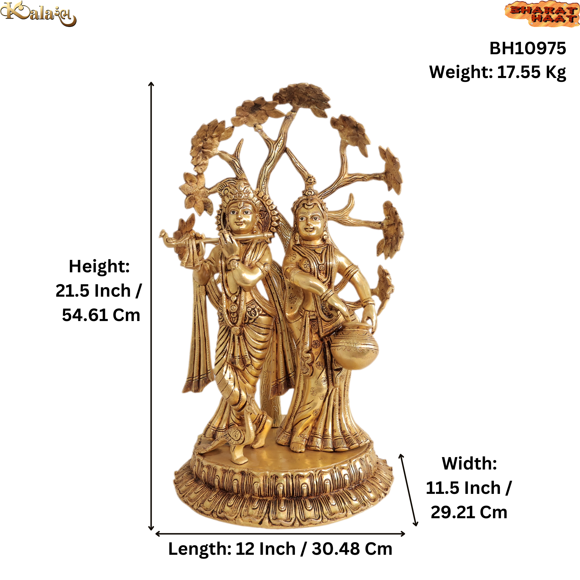 Brass Radha Krishna Idol – Handcrafted Large Divine Couple Statue, 17.55kg, Bring home the divine charm of Radha Krishna with this grand handcrafted brass idol, a true symbol of eternal love, harmony, and devotion. Radha and Krishna together represent the spiritual bond of love and bliss, making this idol an auspicious addition to any sacred or decorative space.