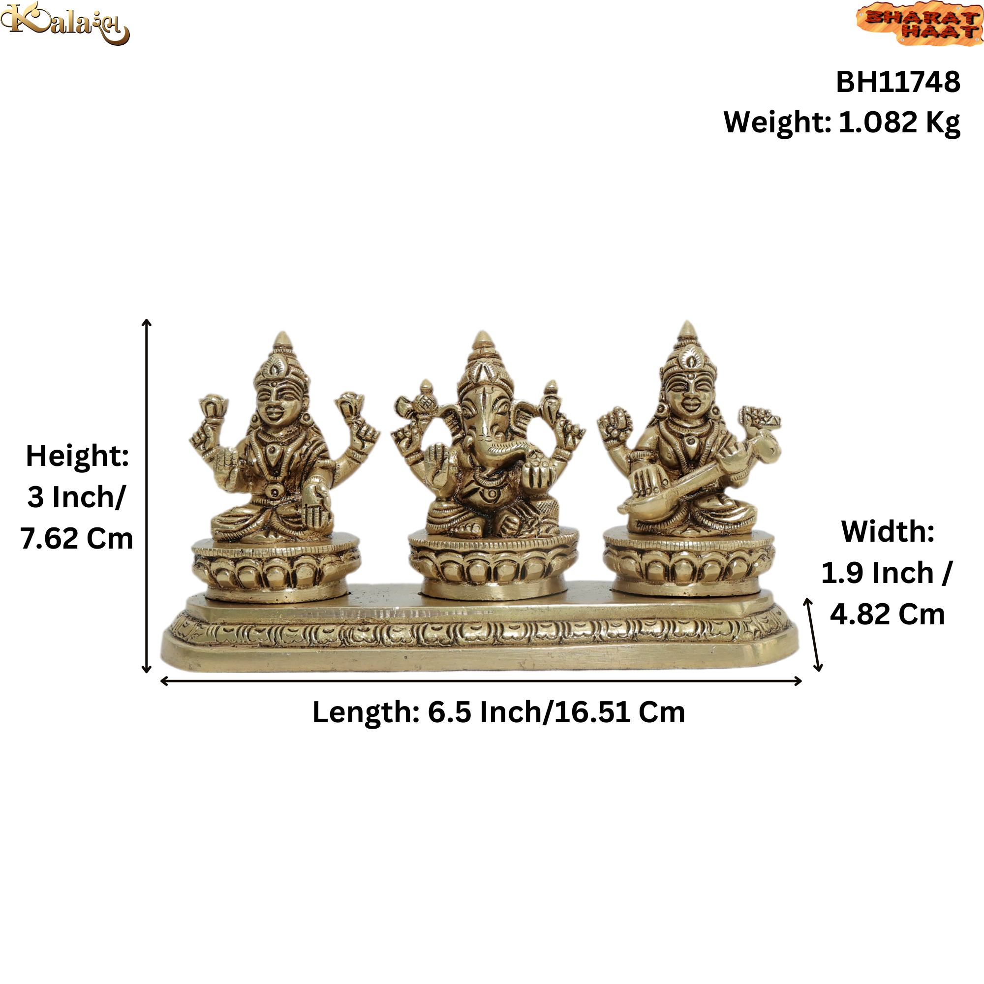 Brass Ganesha-Lakshmi-Saraswati Height 3 Inch KBH11748