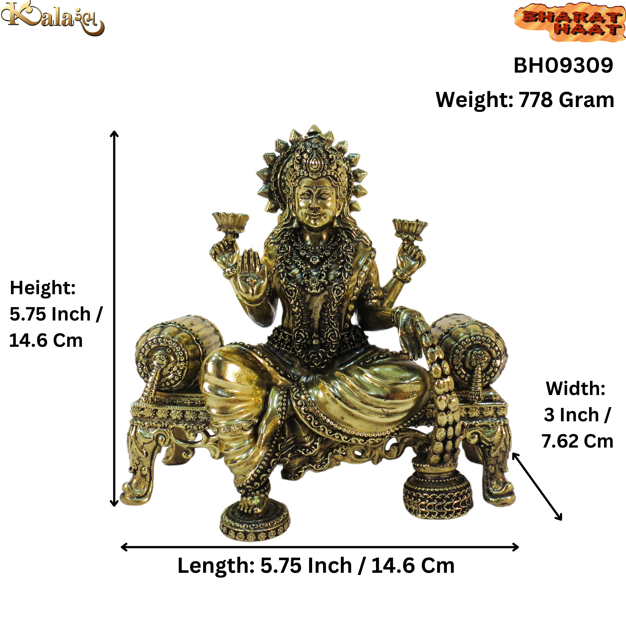 Handcrafted Brass Sofa Laxmi idol, 5.75 x 3 x 5.75 Inch, 778 gms. Features Goddess Laxmi seated on a sofa, perfect for pooja rooms, home décor, and gifting.