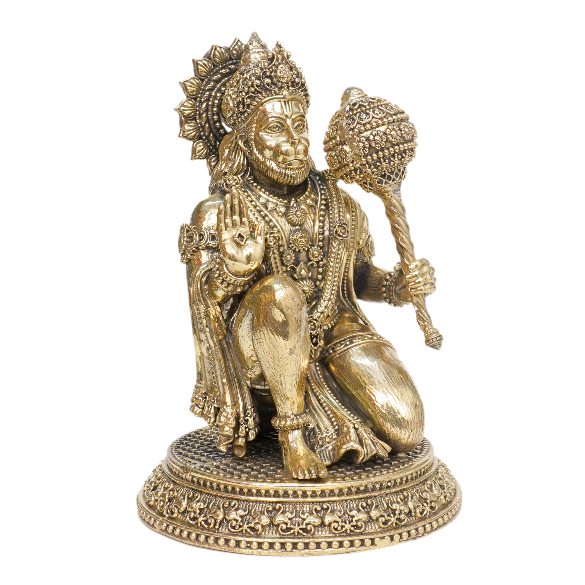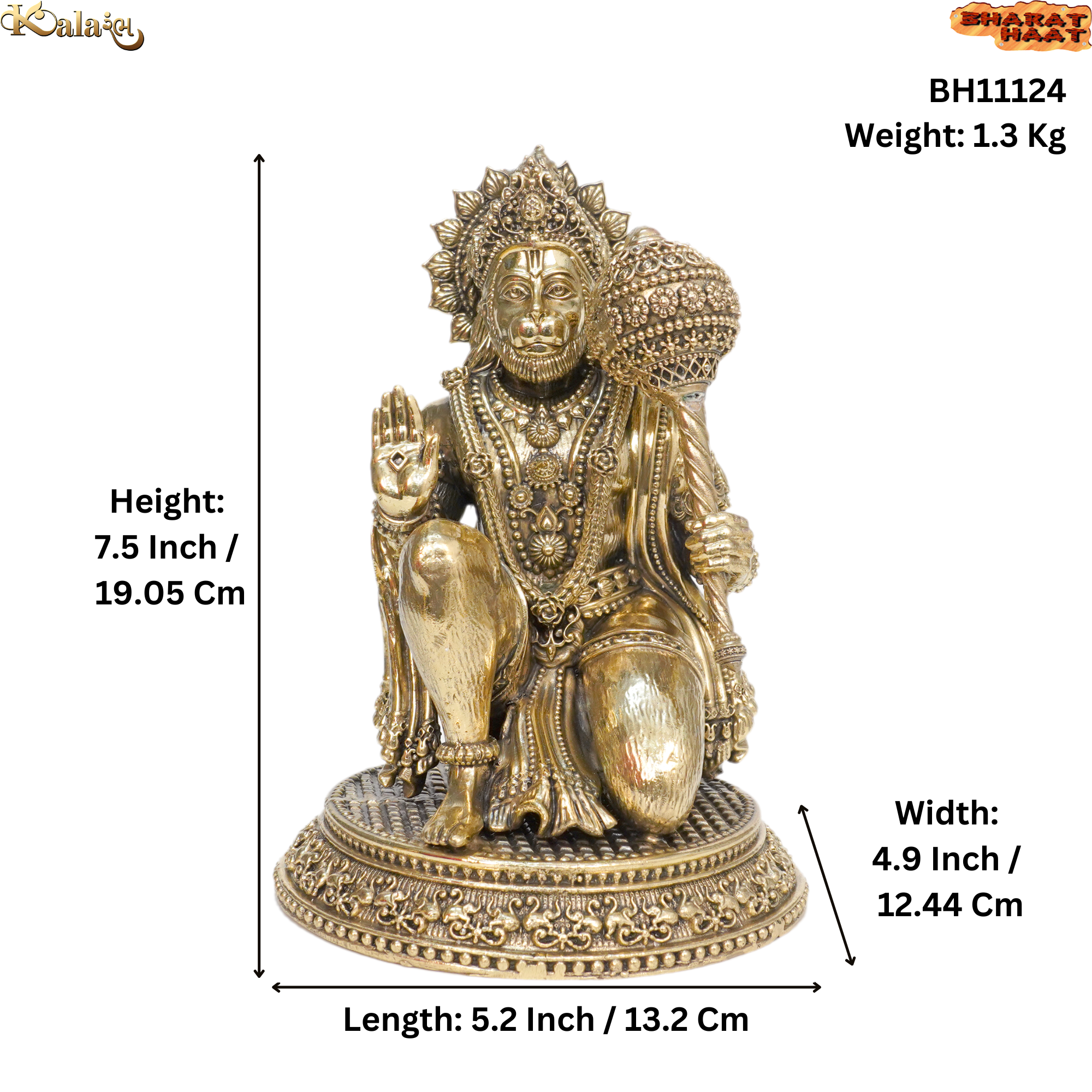 Handcrafted Brass Hanuman Idol – Bajrangbali Statue for Home Temple, Office & Spiritual Décor (1.4 Kg, 7.5 Inch Height),