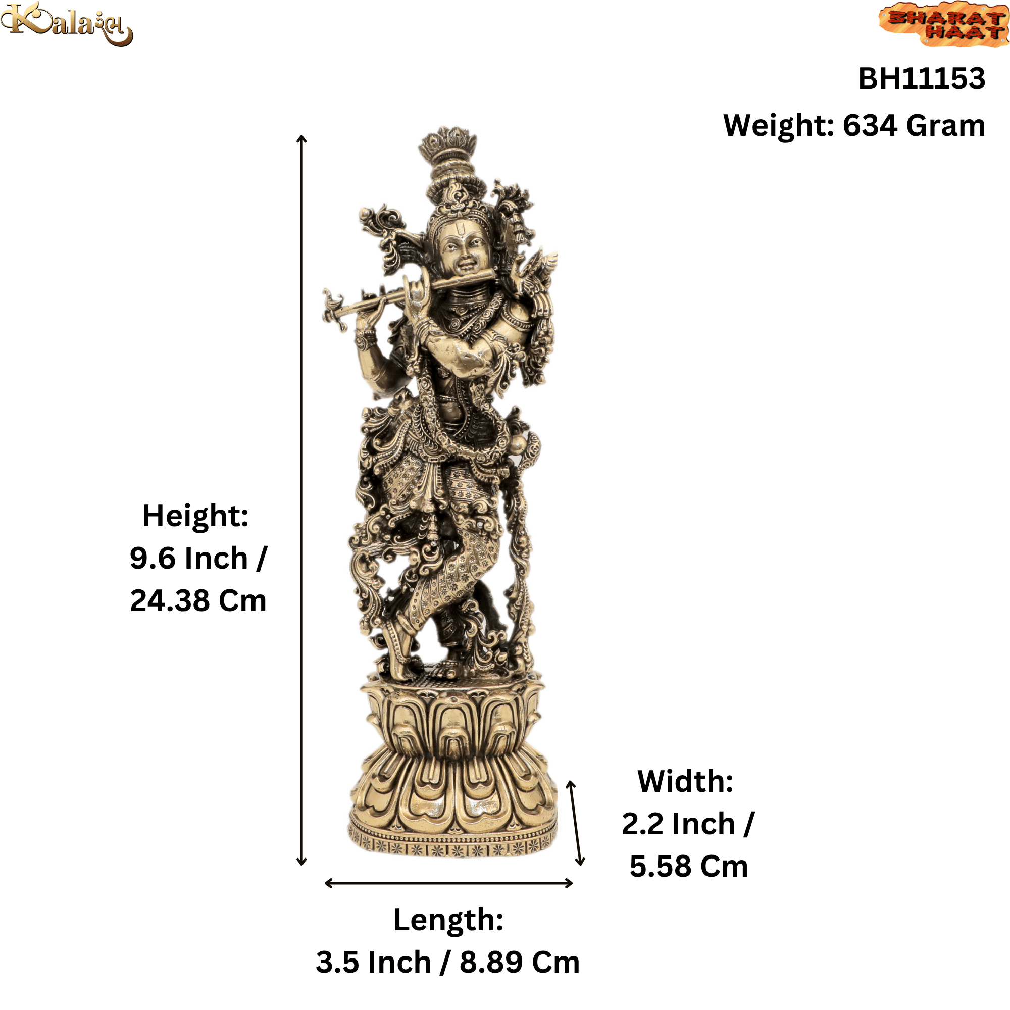 Handcrafted Brass Krishna Idol – Lord Krishna Playing Flute, Spiritual Décor & Pooja Statue (3.5 x 2.2 x 9.6 Inch, 634 Gram), Bring the divine charm of Lord Krishna into your home with this exquisite Handcrafted Brass Krishna Idol. Lord Krishna, the epitome of love, wisdom, and devotion, is beautifully depicted playing his flute, radiating joy and spiritual energy.