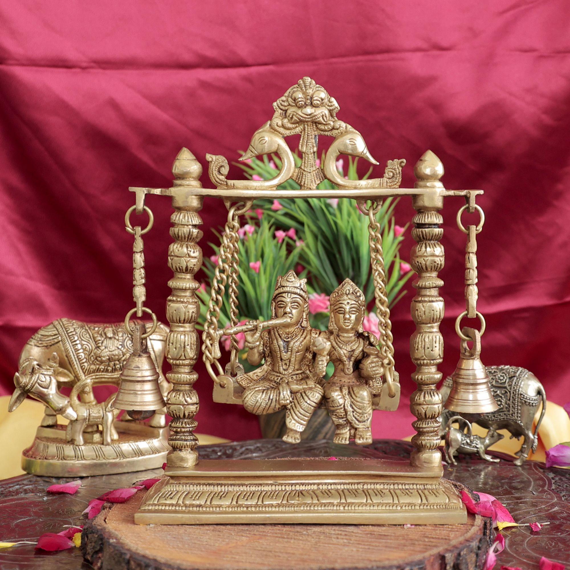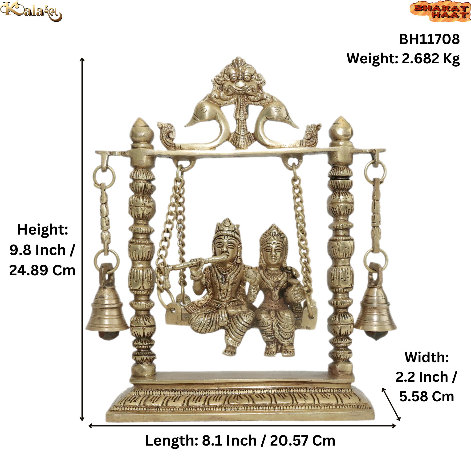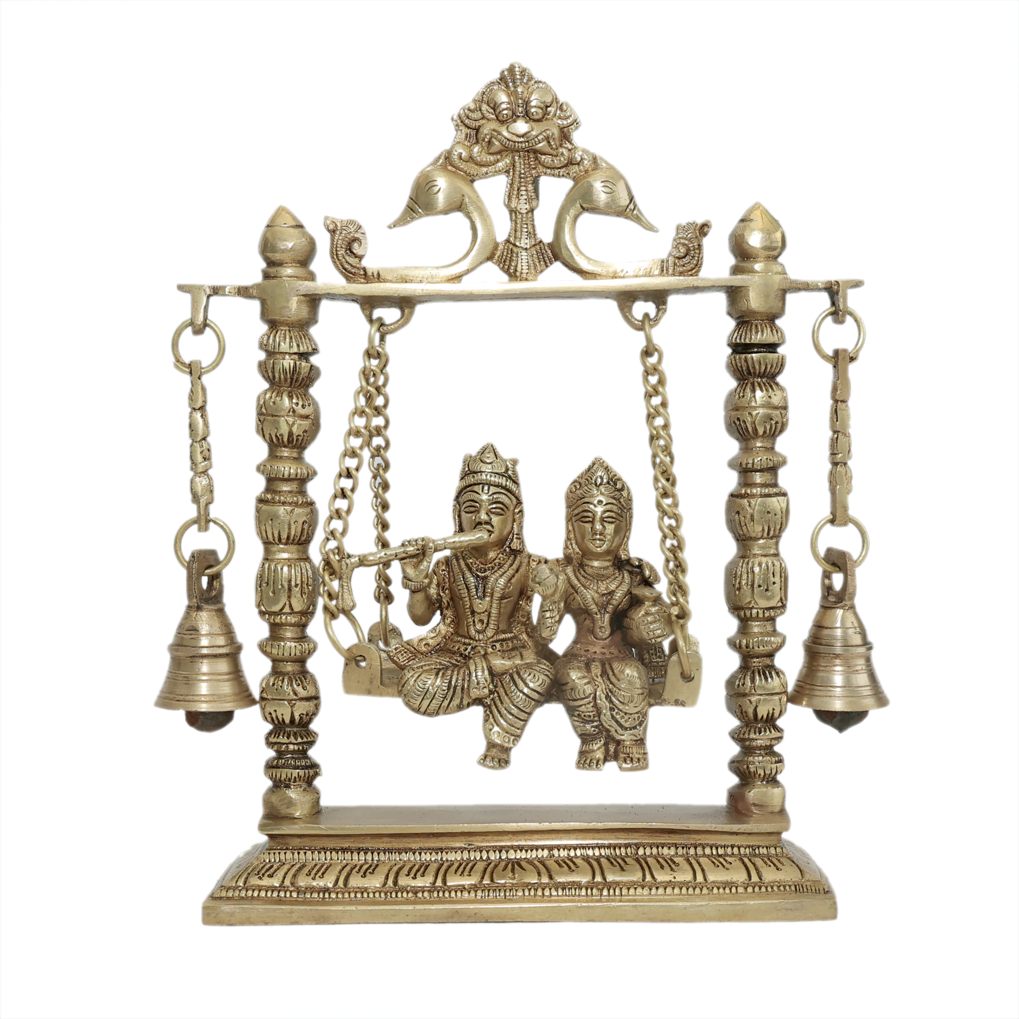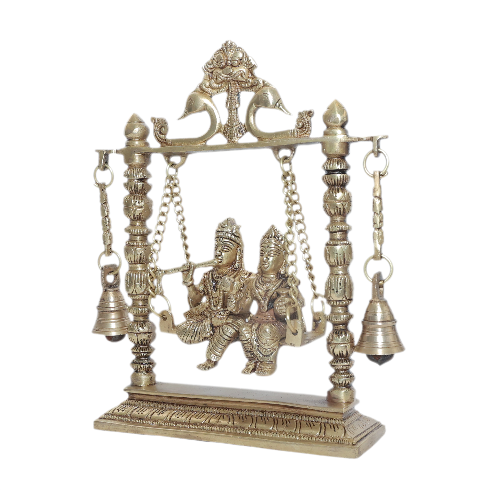 · Design: Radha Krishna on a Swing with Hanging Bells, showcasing fine detailing and artistic craftsmanship.
