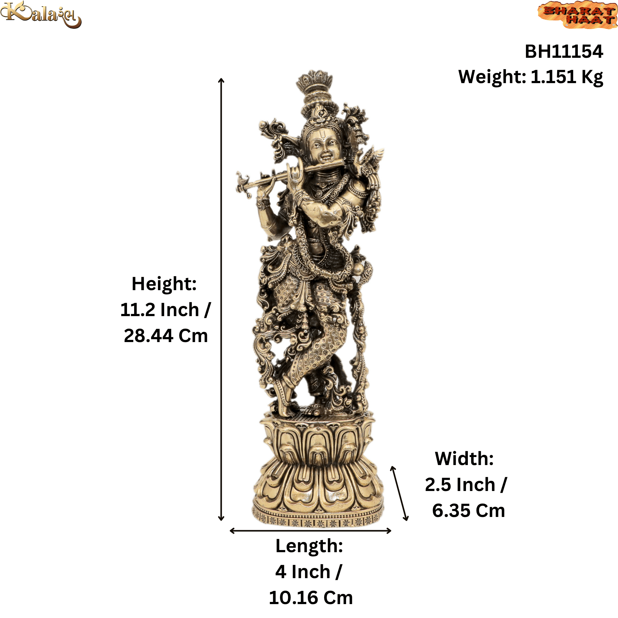 Handcrafted Brass Krishna Idol – Lord Krishna Playing Flute, Spiritual Décor & Pooja Statue (4 x 2.5 x 11.2 Inch, 1.151 Kg), Bring divine charm and spiritual positivity to your home with this Handcrafted Brass Krishna Idol. Lord Krishna, the symbol of love, wisdom, and devotion, is elegantly depicted playing his flute, radiating joy, peace, and spiritual energy.