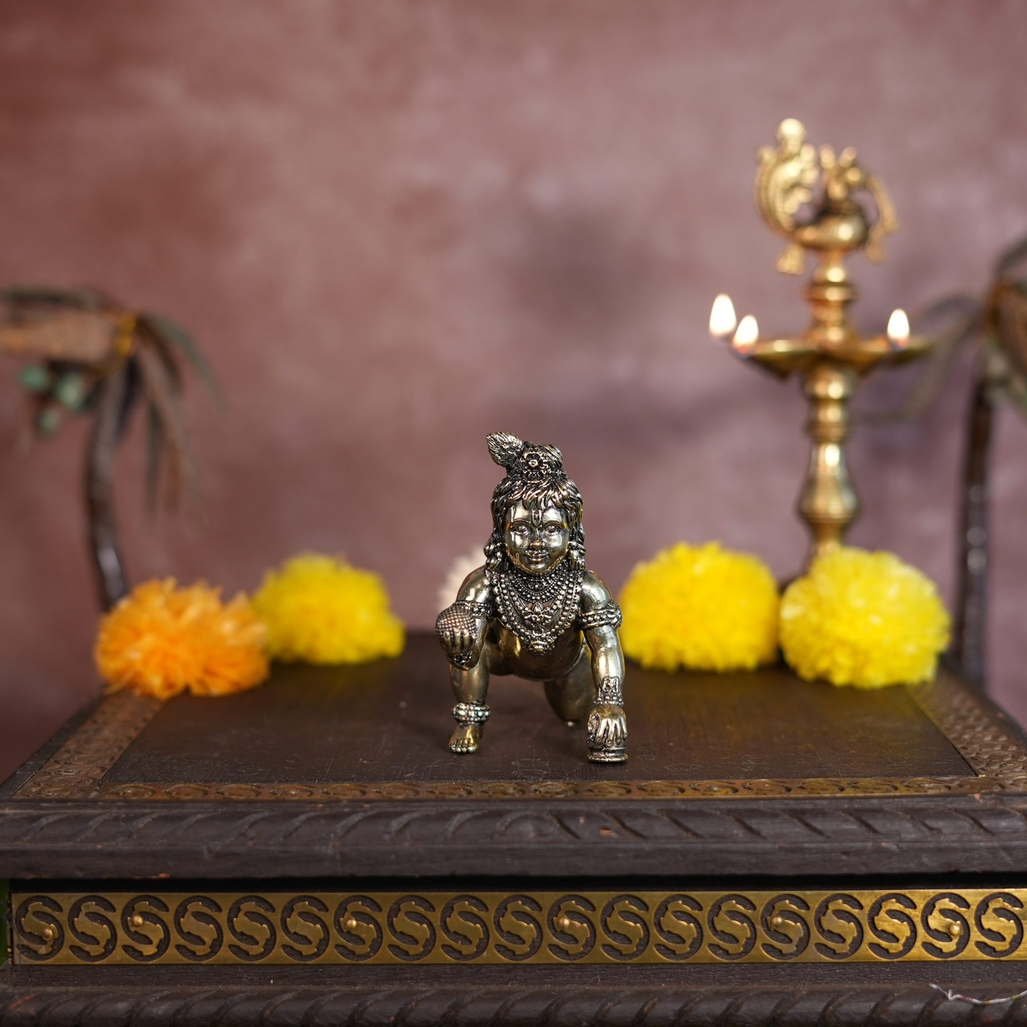 Design: Bal Krishna in a playful pose, beautifully detailed and polished.