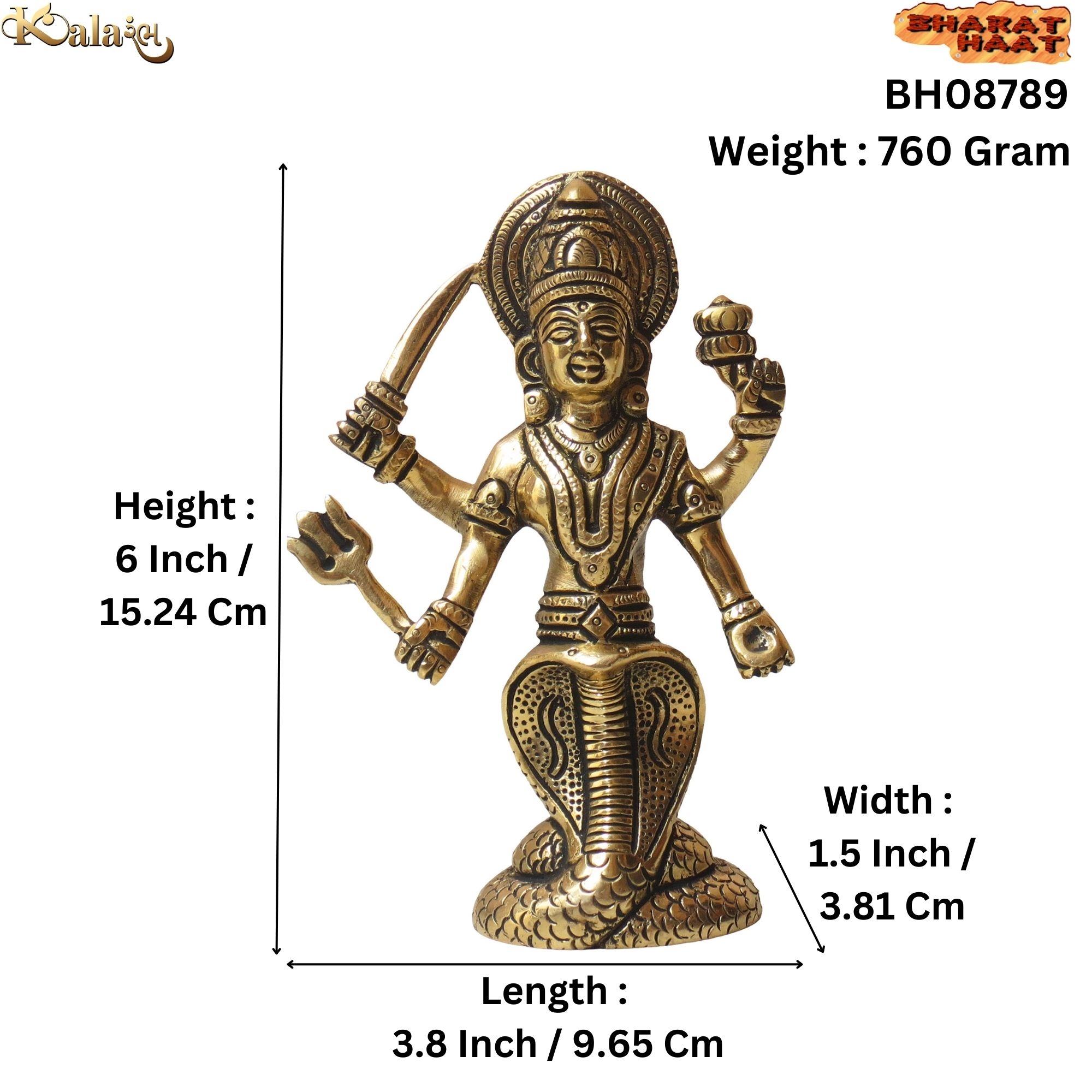 With product dimensions of 3.8 x 1.5 x 6 inches (9.65 x 3.81 x 15.24 cm) and weighing 760 grams, it is perfectly sized — compact yet substantial enough to reflect a sense of devotion and grandeur. Ideal for daily worship, festive décor, or gifting during religious ceremonies, this Brass Nageshwari Maa Idol combines spirituality with elegance.