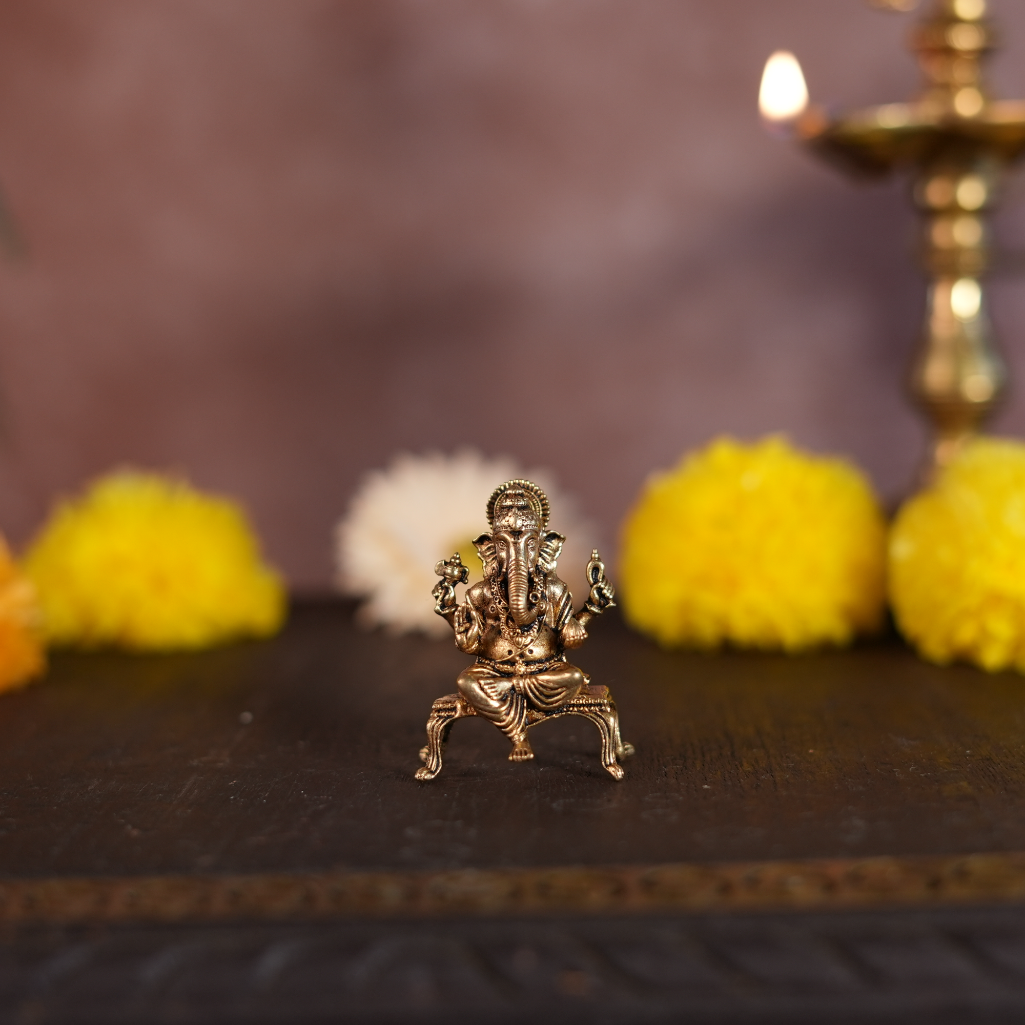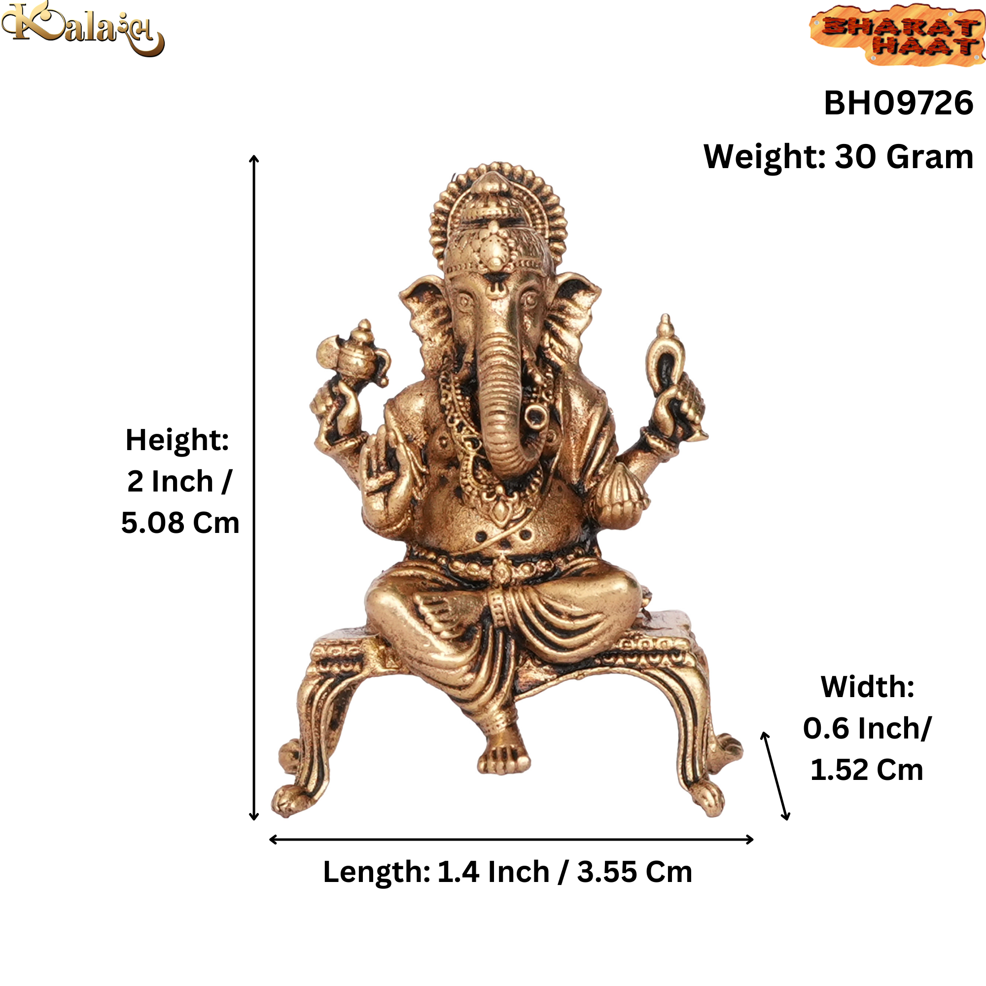 Mini Brass Ganesha Idol handcrafted by skilled Indian artisans.