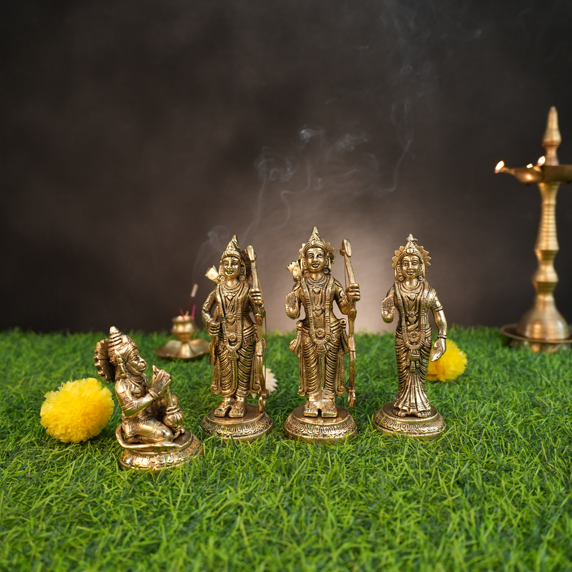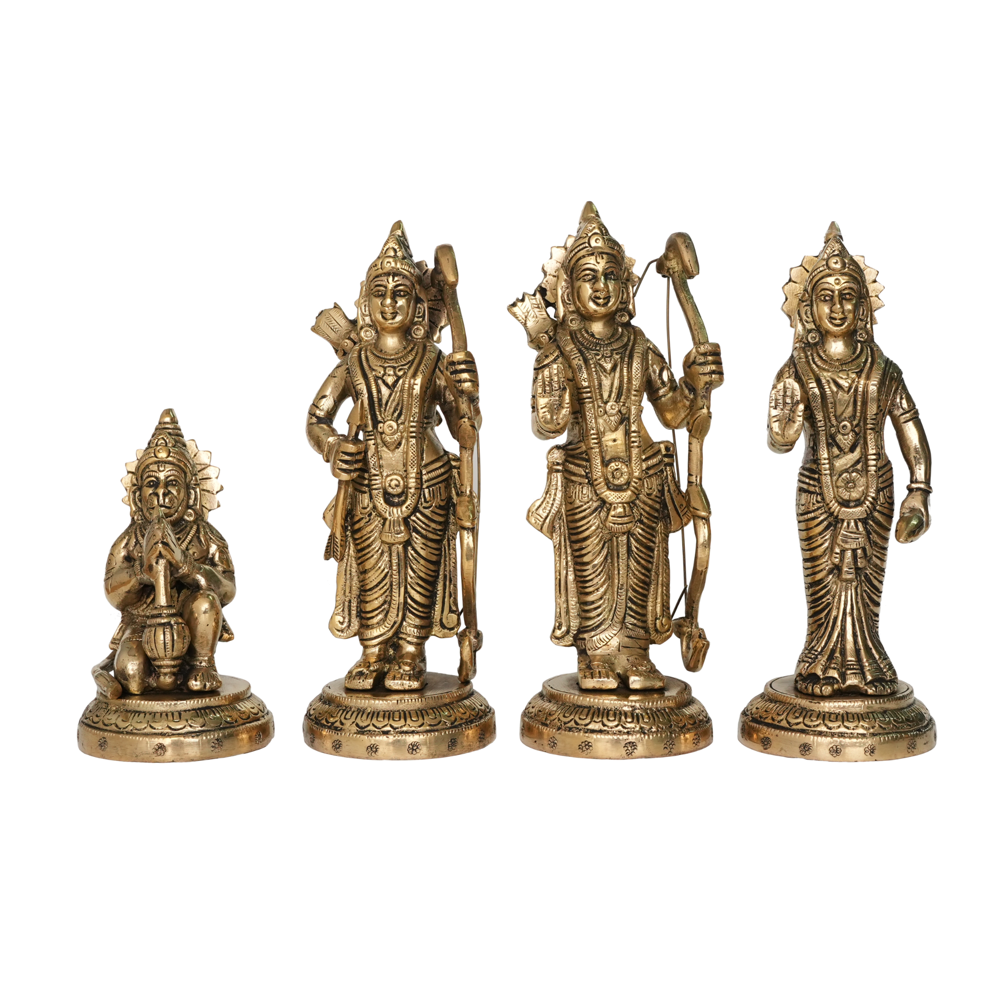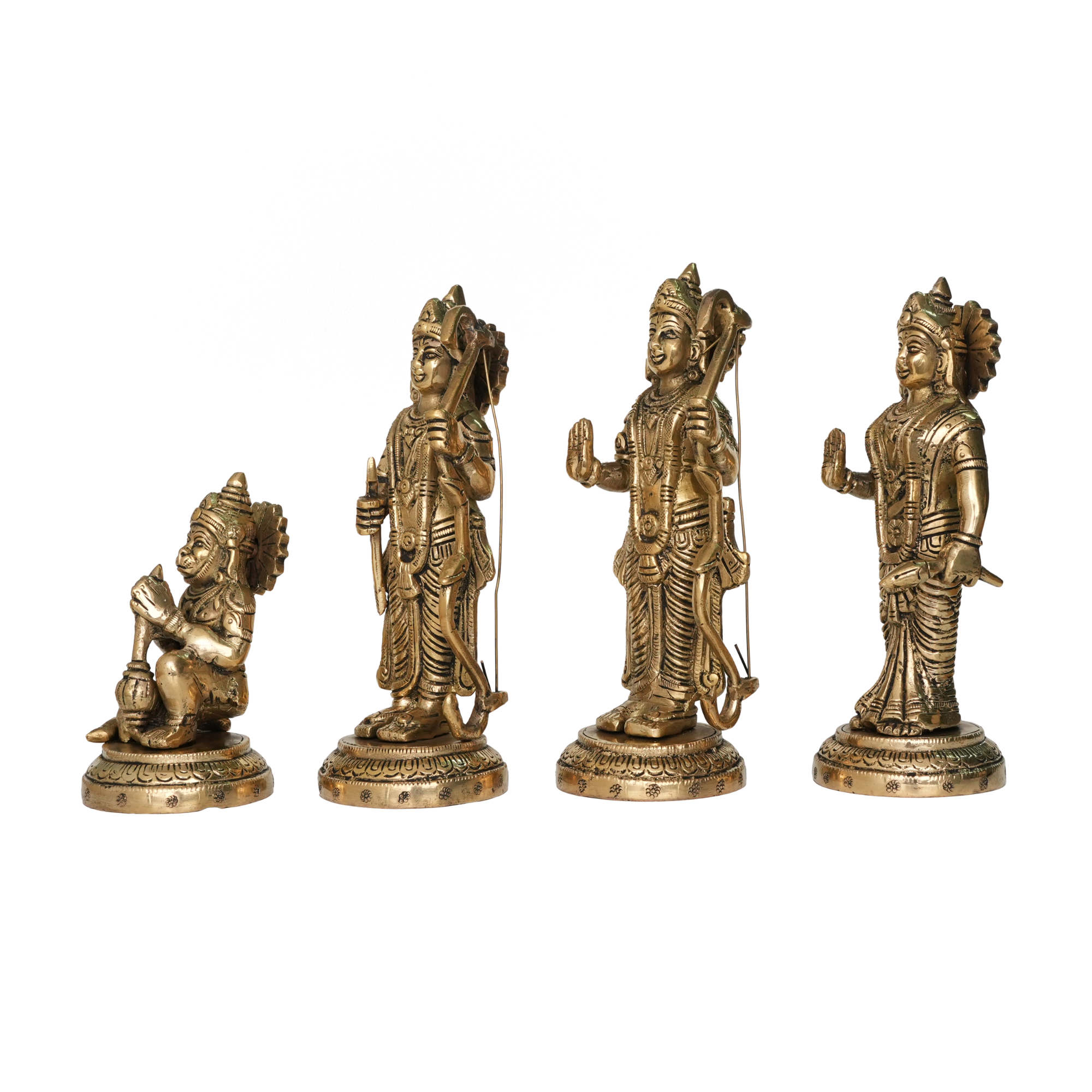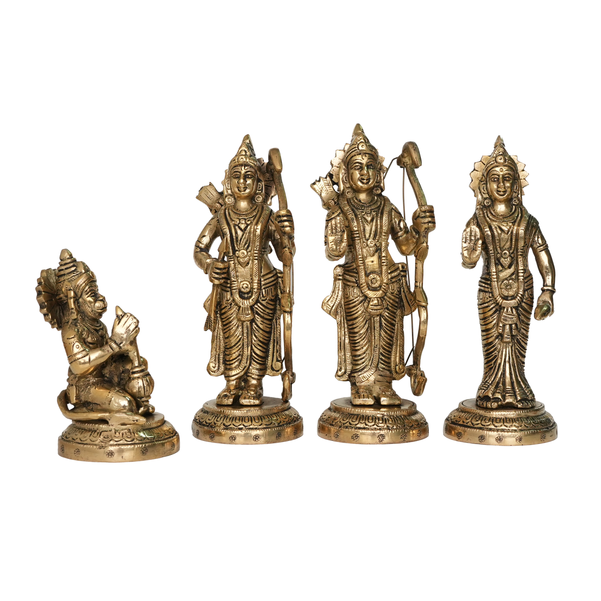 Bring divine blessings and spiritual charm to your home with this Handcrafted Brass Ram Darbar Idol, featuring Lord Ram, Goddess Sita, Lord Laxman, and Lord Hanuman. Made from high-quality brass, this beautifully detailed idol is sturdy, durable, and visually striking. Measuring 10 x 2.5 x 7.5 Inch and weighing 4.09 Kg, it is perfect for home temples, pooja rooms, or as a centerpiece in your living space. The Ram Darbar symbolizes devotion, righteousness, and divine energy, making it an ideal choice for daily worship or as a thoughtful gift during Ram Navami, Diwali, housewarming, or weddings.