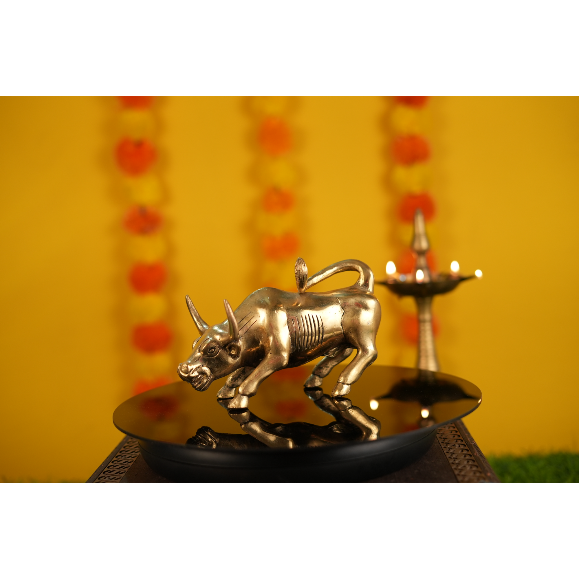 Bring home strength, stability, and prosperity with this Handcrafted Brass Bull Statue. Expertly designed from premium-quality brass, this figurine represents determination and success. Measuring 7 x 2 x 4.2 Inch and weighing 1.44 Kg, it’s a sturdy and elegant decorative piece for your home, office, or temple space. The bull symbolizes power and progress, making it a great addition to your décor or a meaningful gift for business openings, festivals, and housewarming occasions. Its antique brass finish adds a touch of traditional charm and divine grace to any space.