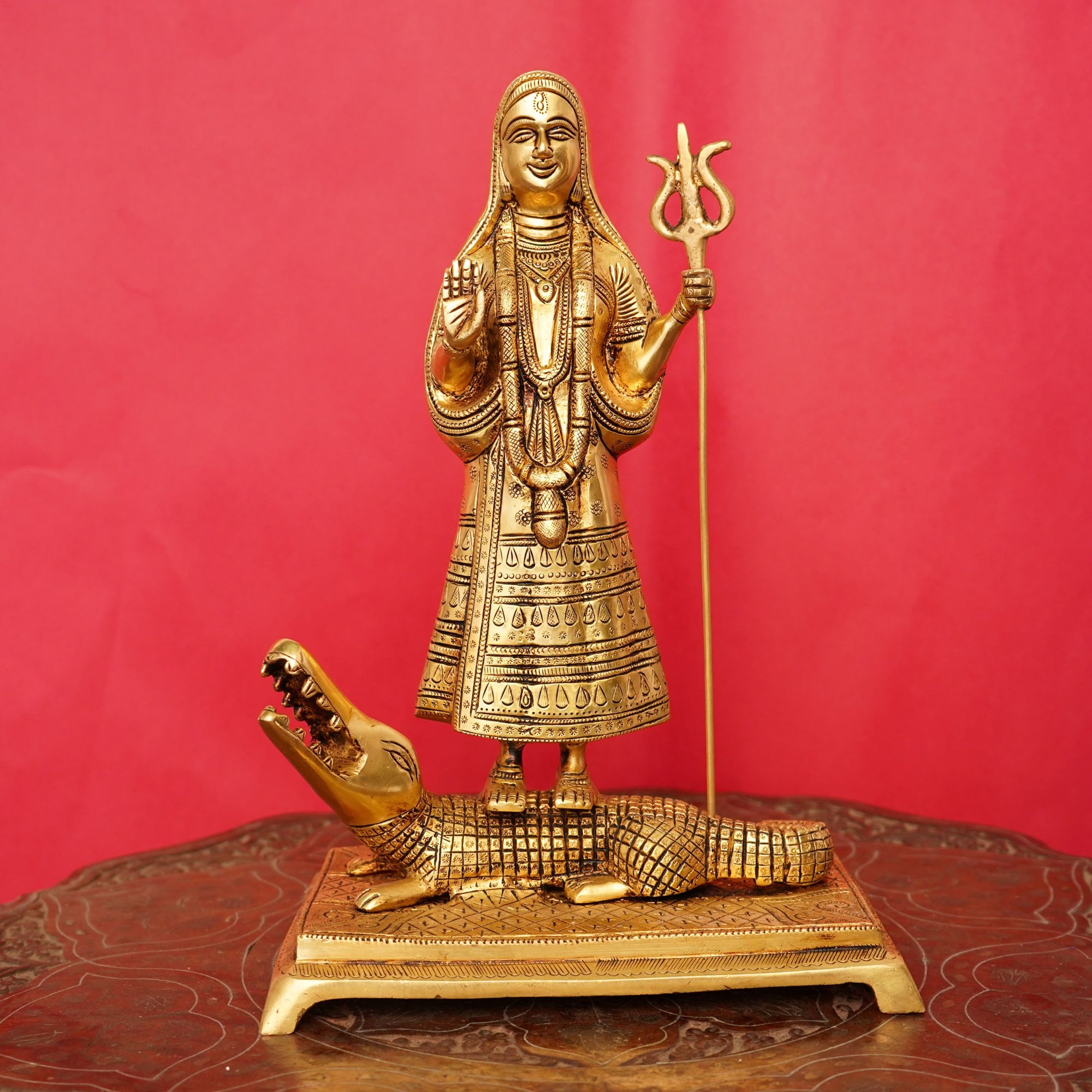 Handcrafted Pure Brass Khodiyar Maa Statue | Devotional Idol for Home Temple & Spiritual Décor, Bring divine blessings and spiritual energy to your home with this Handcrafted Brass Khodiyar Maa Statue. Crafted by skilled Indian artisans, this idol beautifully represents Khodiyar Maa, revered for her protection, strength, and grace.