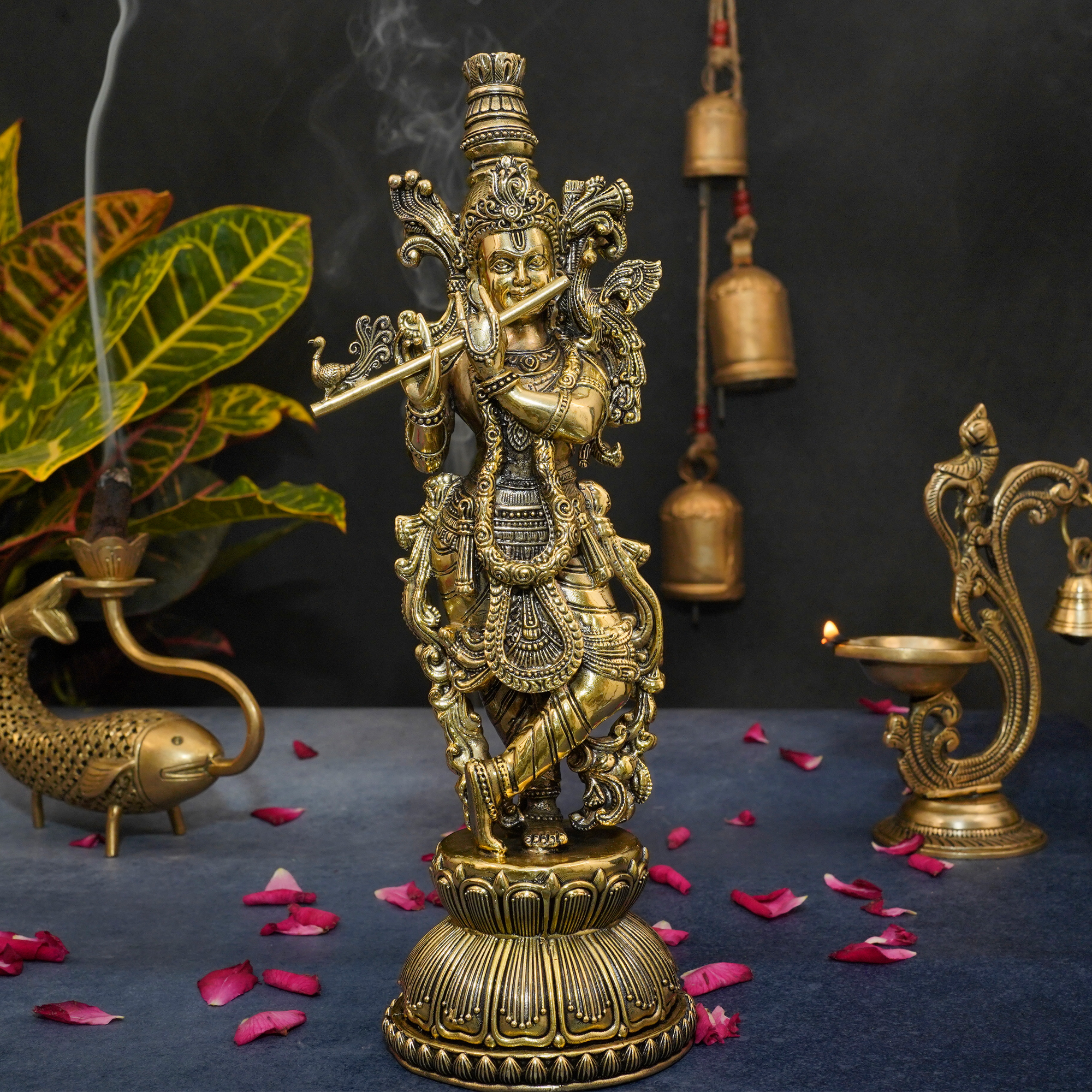 Design: this Handcrafted Brass Krishna Idol, beautifully representing Lord Krishna in a graceful and devotional posture.