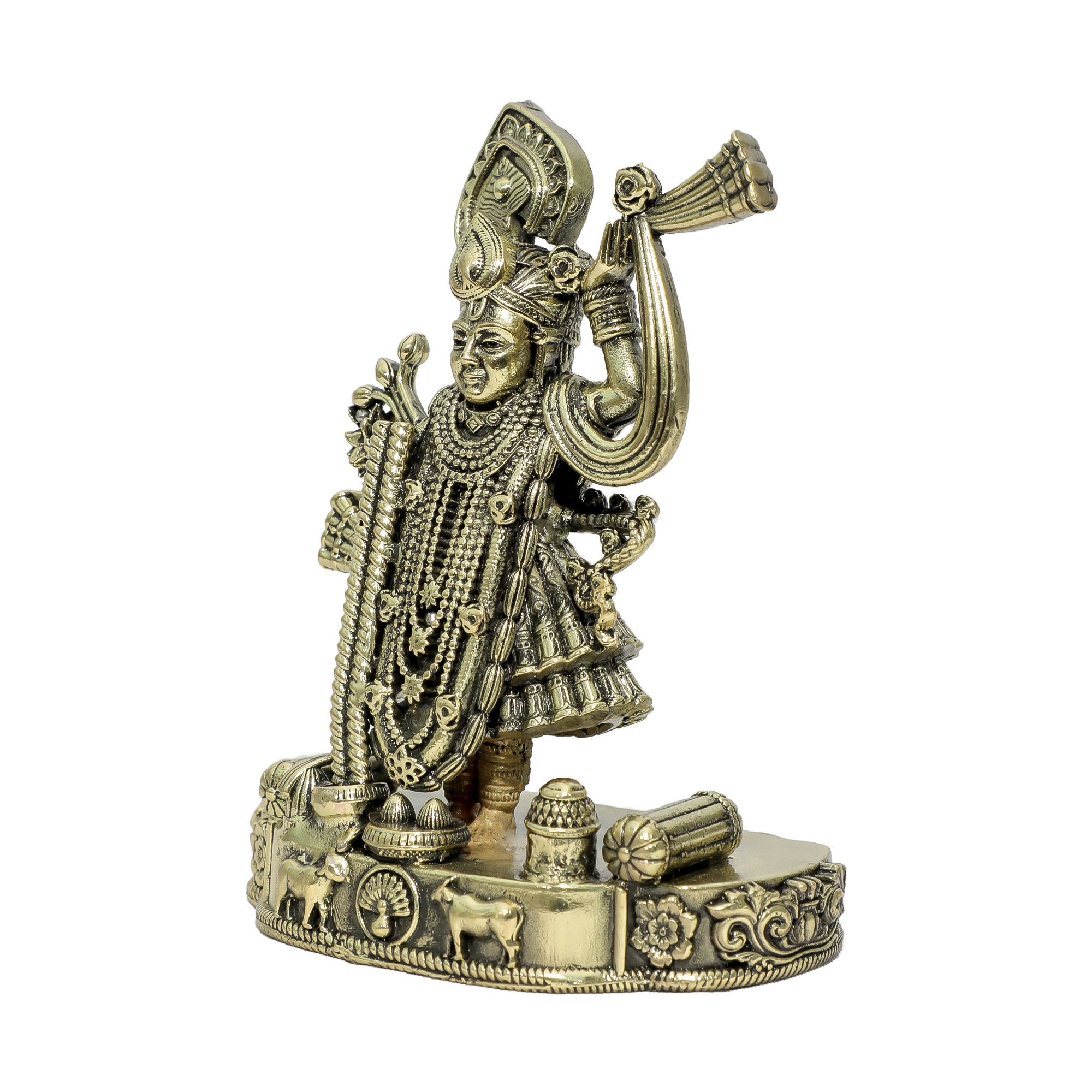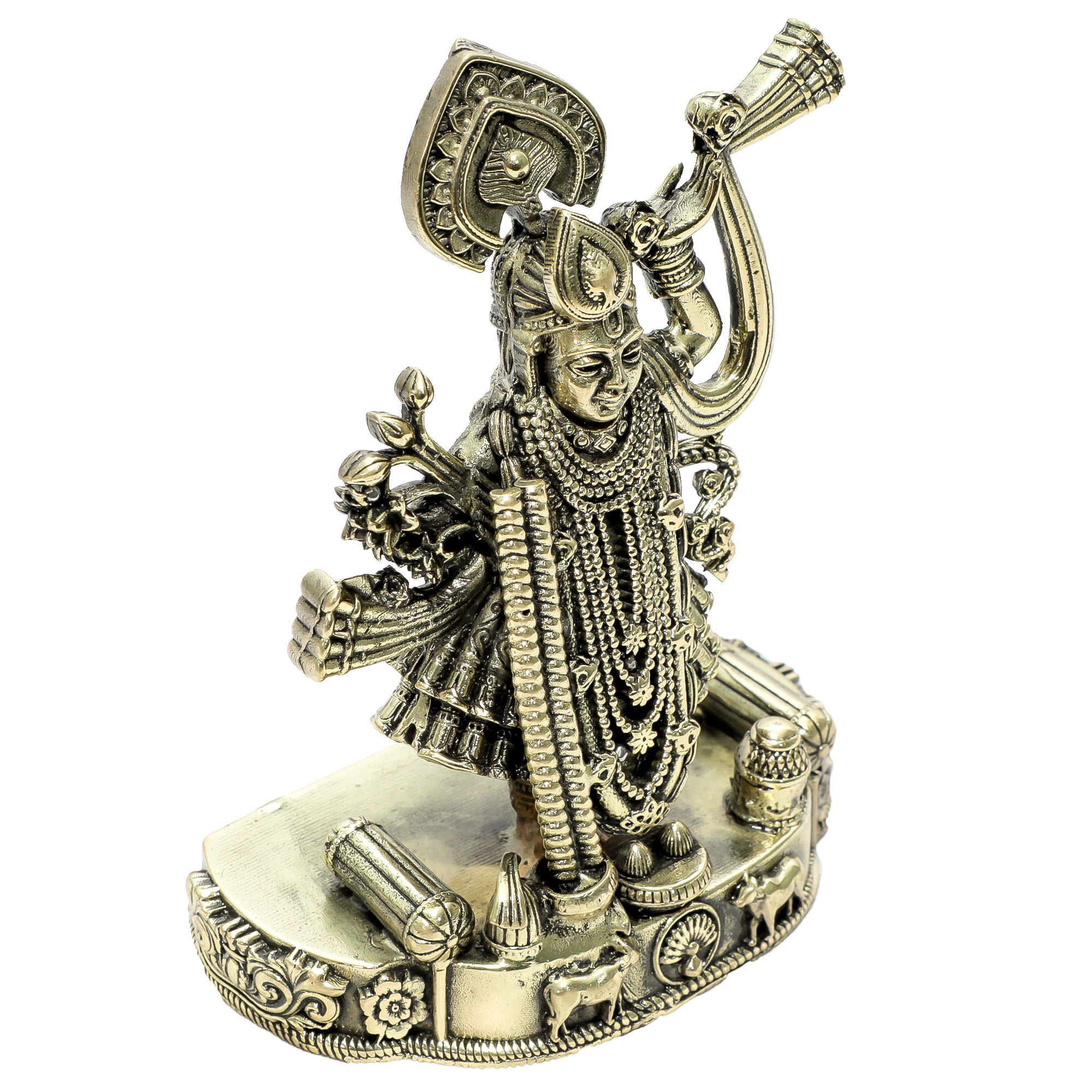 Handcrafted Brass Shrinathji Idol | Lord Krishna Shreenathji Statue for Home Temple & Puja | Pure Brass Murti, Embrace divine energy and traditional artistry with this beautifully handcrafted Brass Shrinathji Idol. Made from premium quality solid brass, this statue represents Lord Shrinathji, a revered form of Lord Krishna worshipped for love, faith, and devotion. Measuring 3.2 x 1.8 x 4 inches and weighing 172 grams, it is a perfect addition to your home temple, pooja room, or office altar.