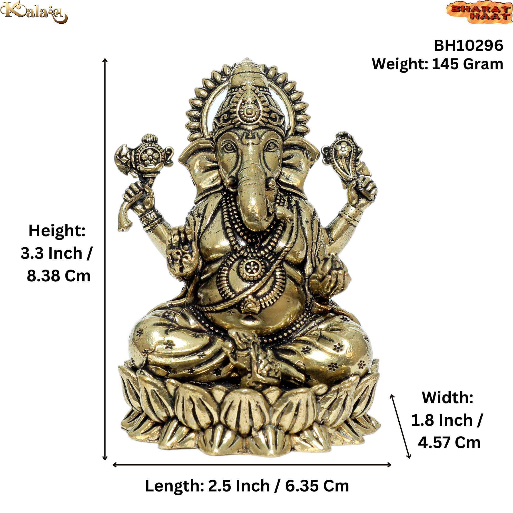 Handcrafted Brass Ganesha Idol | Lord Ganesha Statue for Home Temple & Puja | Pure Brass Murti | 3.3 Inch | 145 Gram, Bring divine blessings and positivity into your home with this Handcrafted Brass Ganesha Idol. Made from high-quality solid brass, this statue beautifully represents Lord Ganesha, symbolising wisdom, success, and the removal of obstacles. Measuring 2.5 x 1.8 x 3.3 inches and weighing 145 grams, it is perfectly sized for home temples, office desks, or pooja rooms.