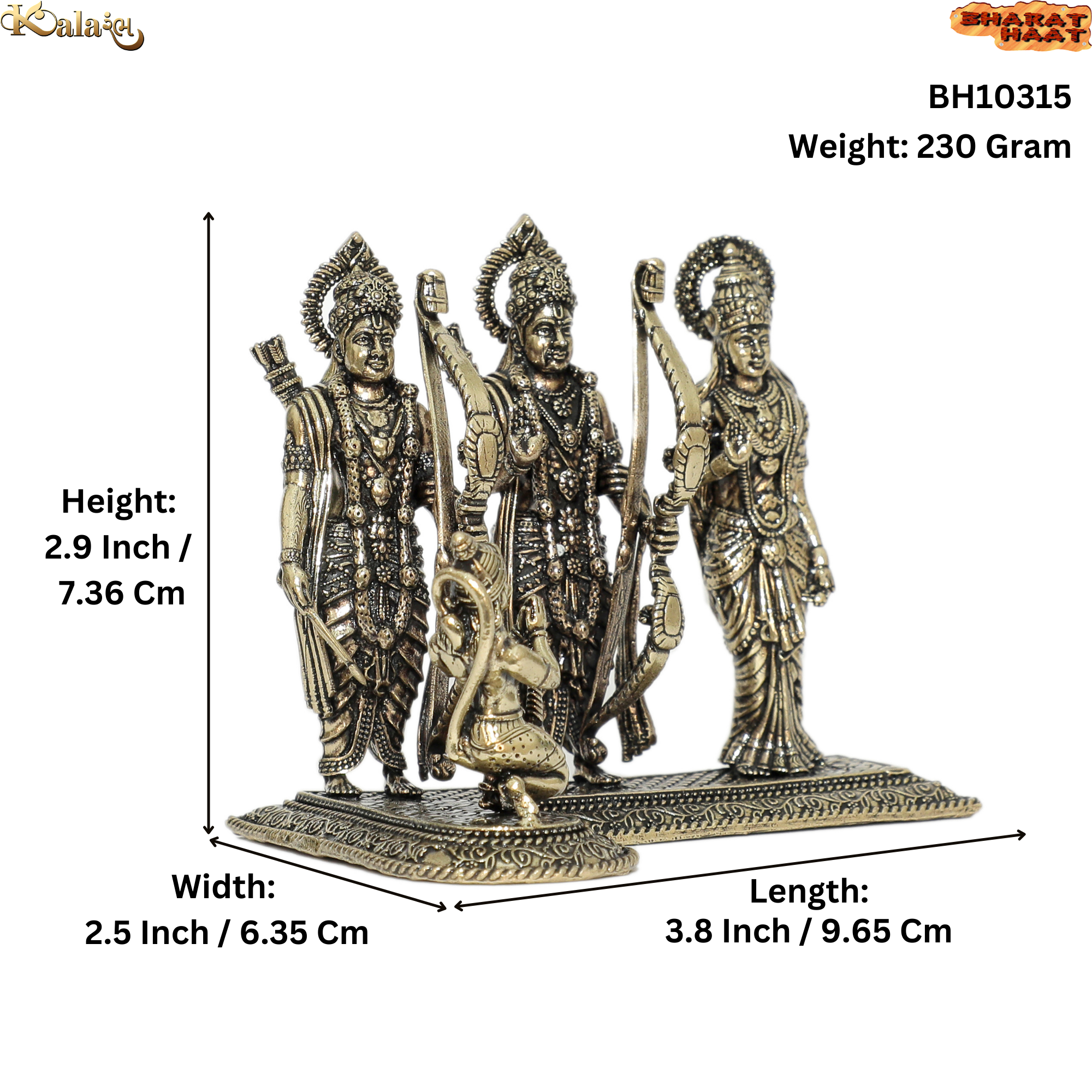 Expertly crafted by skilled Indian artisans using premium quality brass, this idol features fine detailing and a polished antique finish that highlights the divine beauty of the Ram Darbar. With dimensions of 3.8 x 2.5 x 2.9 inches and a weight of 230 grams, it is compact yet visually stunning, making it perfect for home temple, office desk, or pooja altar.